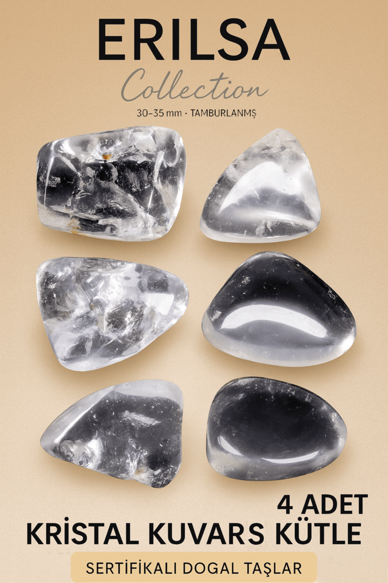 Sertifikalı Gerçek Kristal Kuvars Taşı Kütle – 4 Adetli Parlak ve Saf Doğal Taş