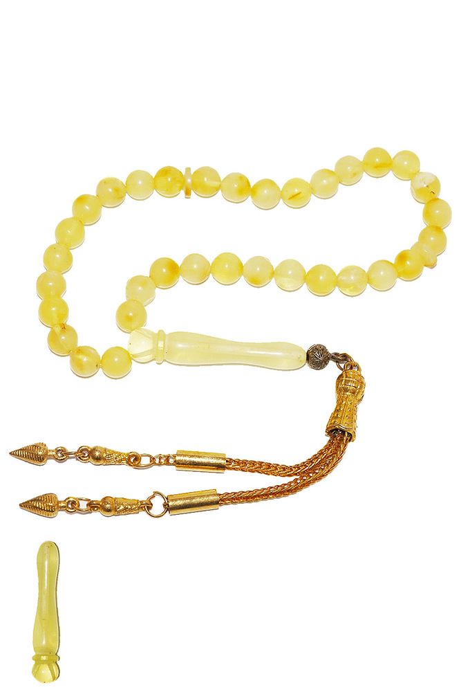 Altın Kaplama Püsküllü Sertifikalı Yarı Şeffaf Renk Küre Kesim Doğal Orjinal Damla Kehribar Tesbih
