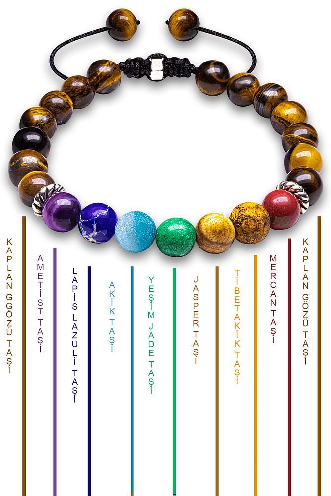 Antistres Pozitif Enerji Sertifikalı Kaplan Gözü Ametist Varisit Akik Yeşim Mercan Taşı Bileklik