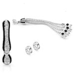 Beyaz Altın Kaplama Siyah Mineli Telkari Imame Püskül Set