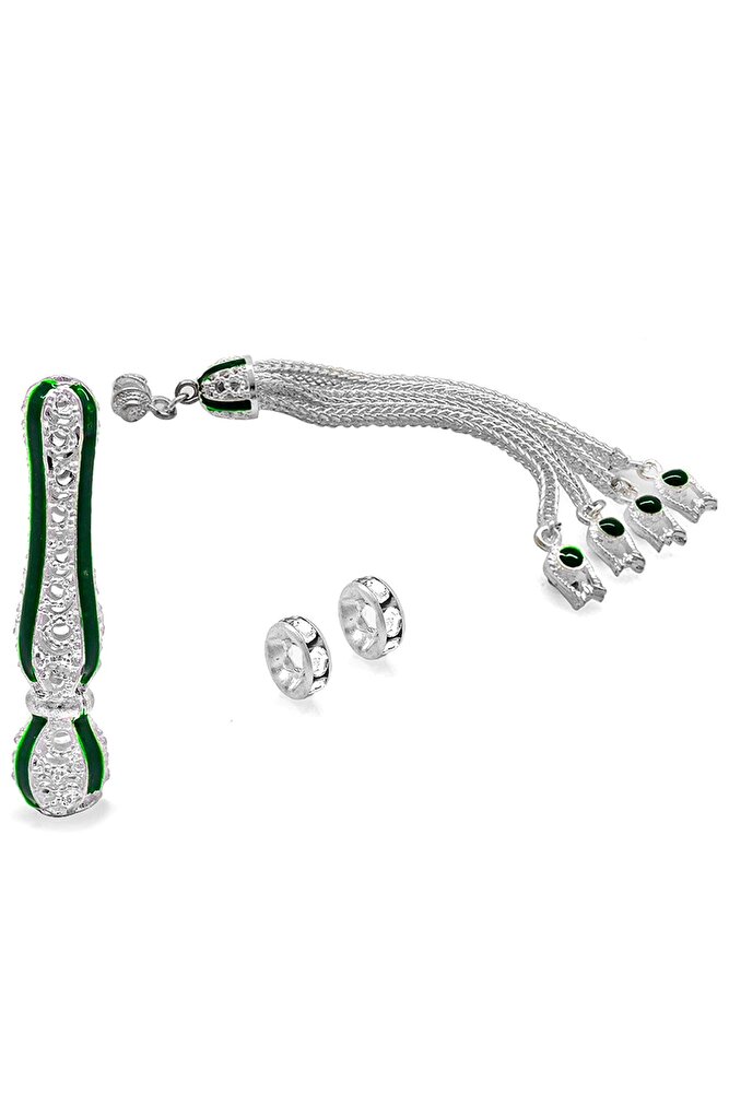 İmame Püskül Set, modelleri, ''Tesbih Atölyesi'' Atölyelerinde ustalarımız tarafından 800 ayar gümüşten oluşmaktadır. Üzerine atılan çift katman rodaj sistemi ile renk atmaz ve matlaşmaz bir yapıya sahiptir. Tesbihlerinizi dilediğiniz gibi tasarlayabilmeniz için özel olarak hazırlandı. Ürünlerimiz el işciliği olduğu için sınırlı sayıda üretilmiştir.; ; Bu tasarımda; 24 Ayar Beyaz Altın Kaplama Zümrüt Yeşil Mineli Telkari süryani işlemesi kullanılmıştır. Renk atmaz ve matlaşmaz bir yapıya sahiptir.; ; Üretildiği Alaşım; Düşük Ayar Gümüş; Ana Renk; Beyaz Zümrüt Yeşil Mineli; Ağırlık; 20-30 gr; Set İçeriği; İmame, Püskül ve Ayraç; Renk Atar Mı?; Renk Atmaz;