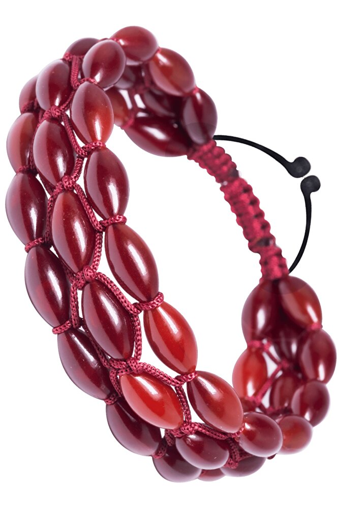 Bordo Makrome Kırmızı Sıkma Kehribar Bileklik