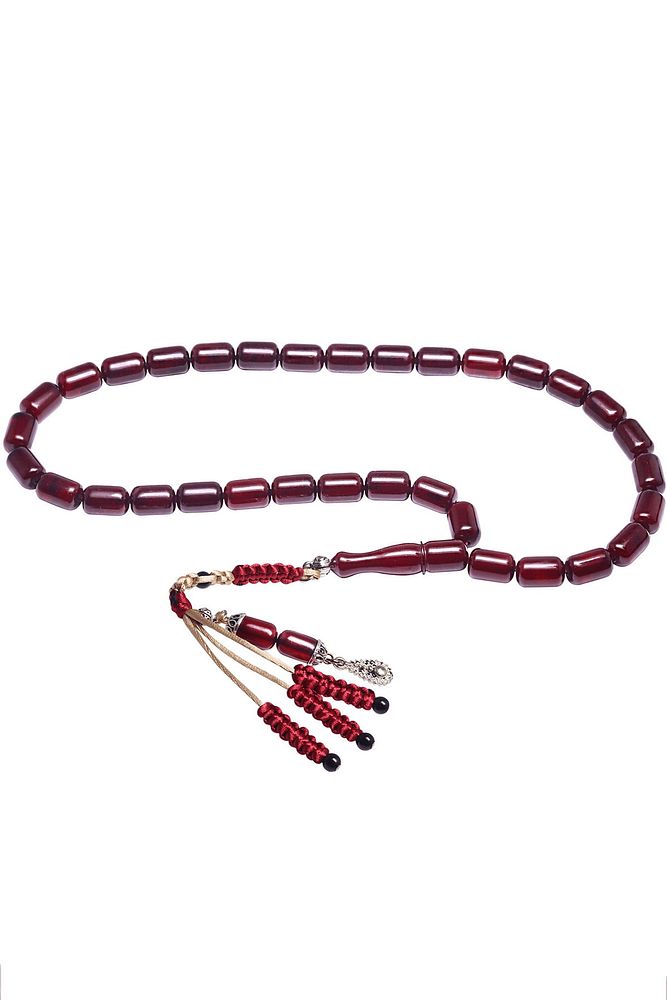 Bordo Renkli Makrome Püsküllü Kapsül Kesim Sıkma Kehribar Tesbih