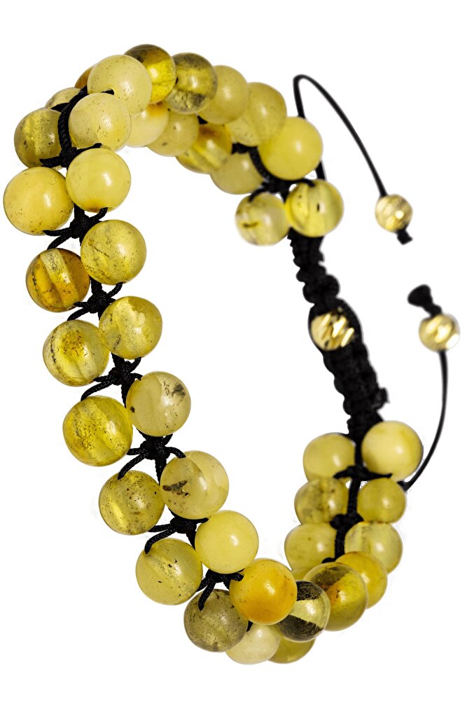 Çift Sıra Siyah Makrome Doğal Damla Kehribar Bileklik