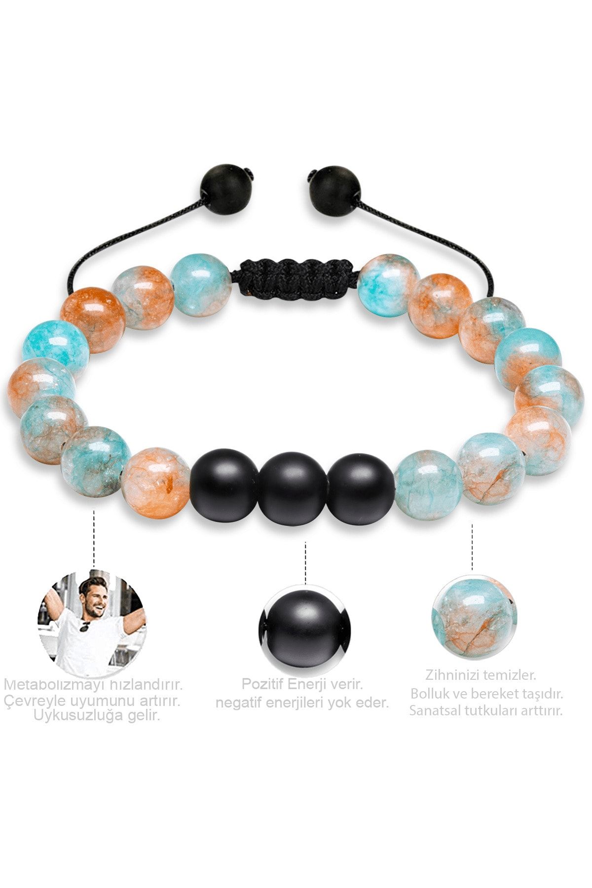 Doğal Mavi Kahverengi Kuvars Oniks Taşı Doğal Taş Bileklik Seti