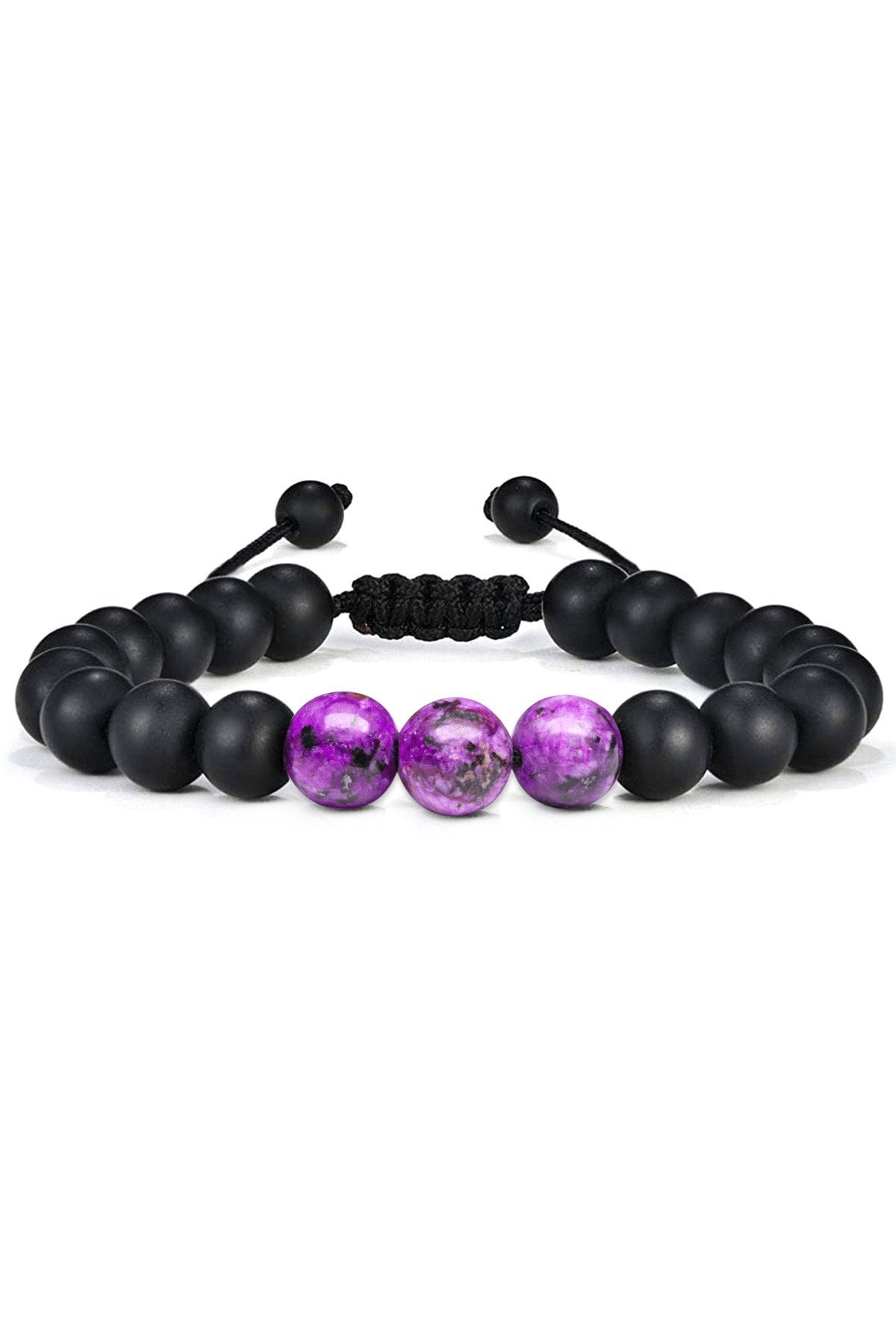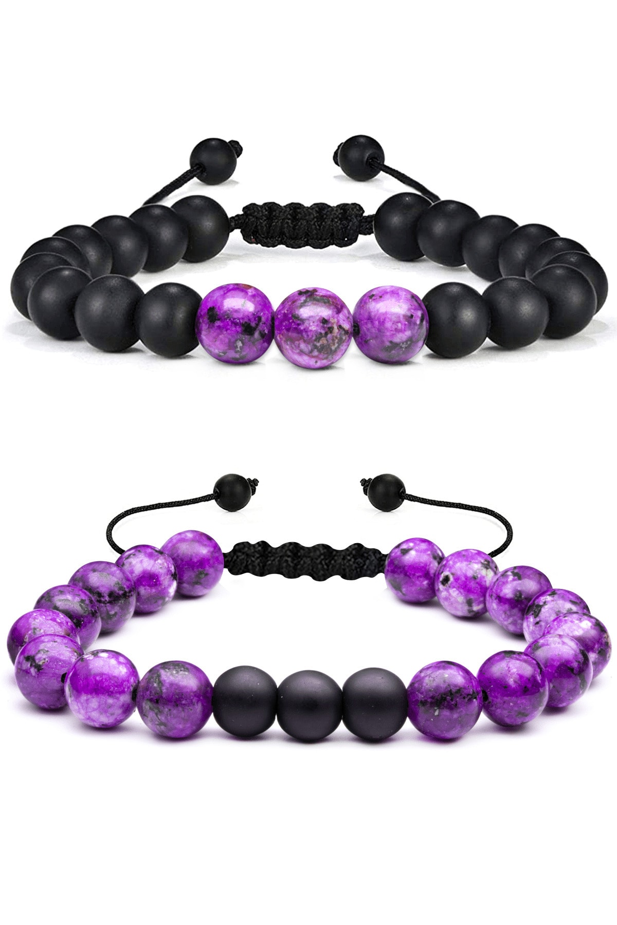 Doğal Taş Bileklik Seti Doğal Mor Siyah Varisit