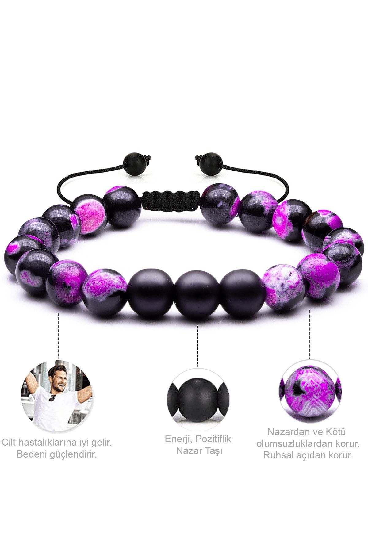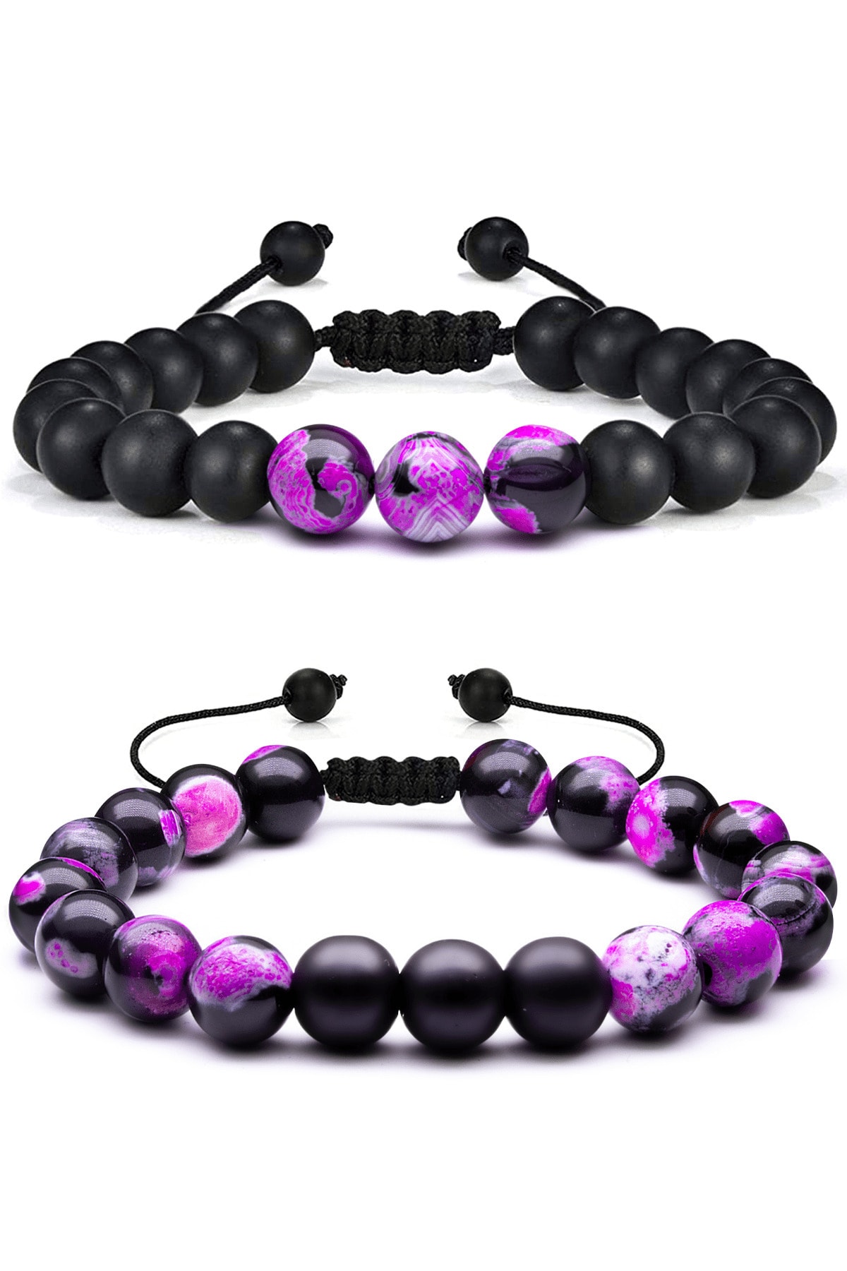 Doğal Taş Bileklik Seti Doğal Pembe Siyah