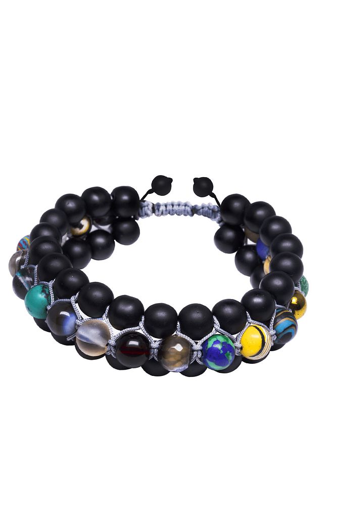 Gri Küre Kesim Doğal Taş Makrome 7 Çakra Bileklik