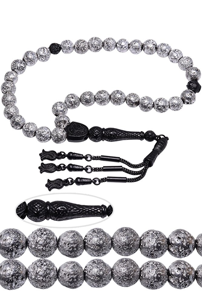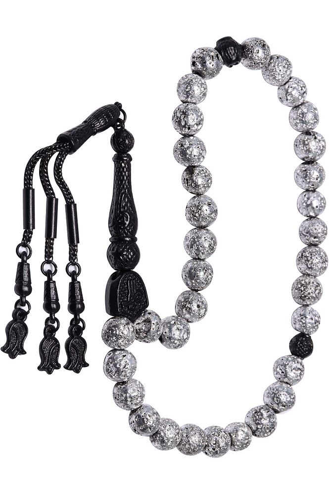 Gümüş Renkli Küre Kesim Lav Taşı Tesbih