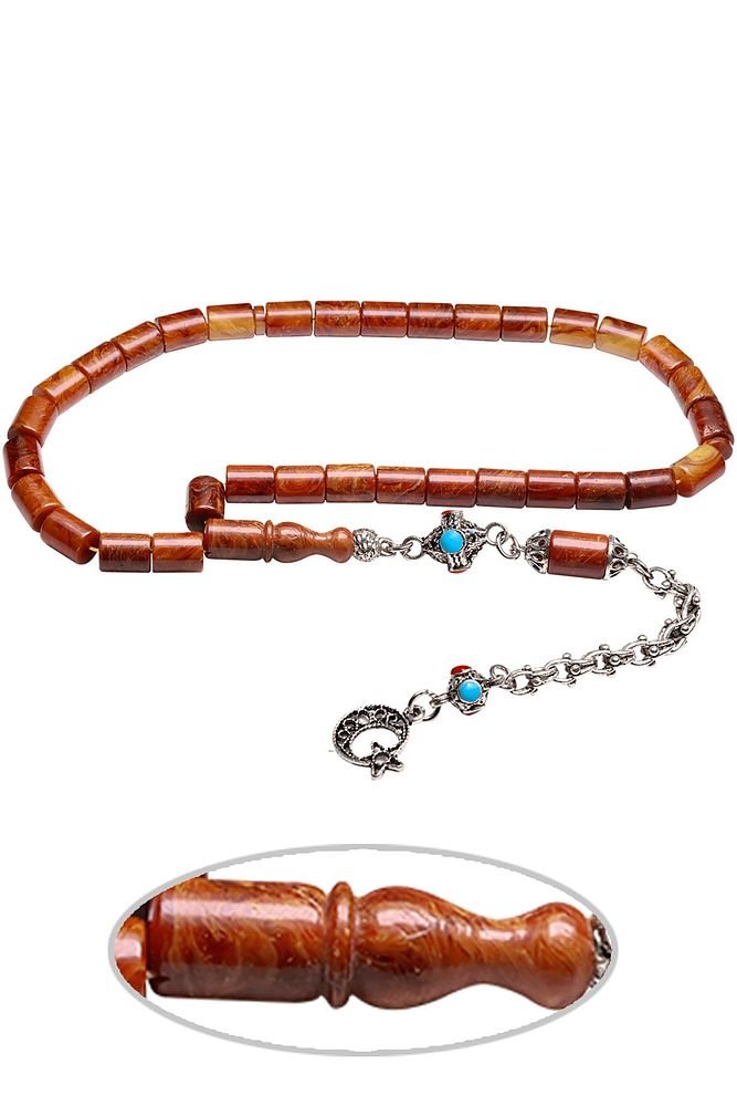 Sertifikalı Sistemli Hareli Osmanlı Benzetmesi Çubuk Sıkma Kehribar Tesbih