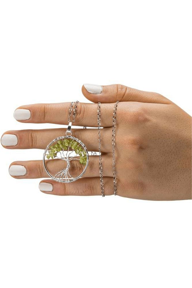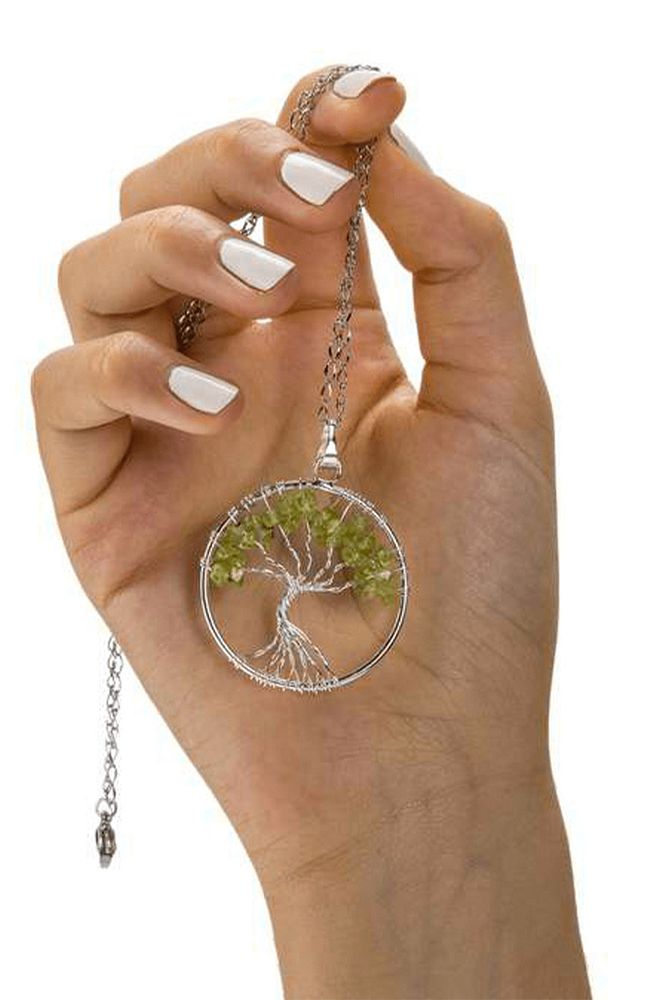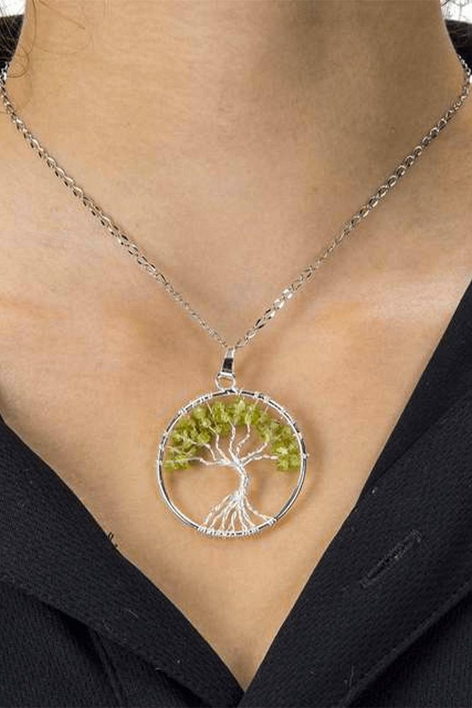 Hayat Ağacı Zebercet Peridot Taşı Doğal Taş Kolye