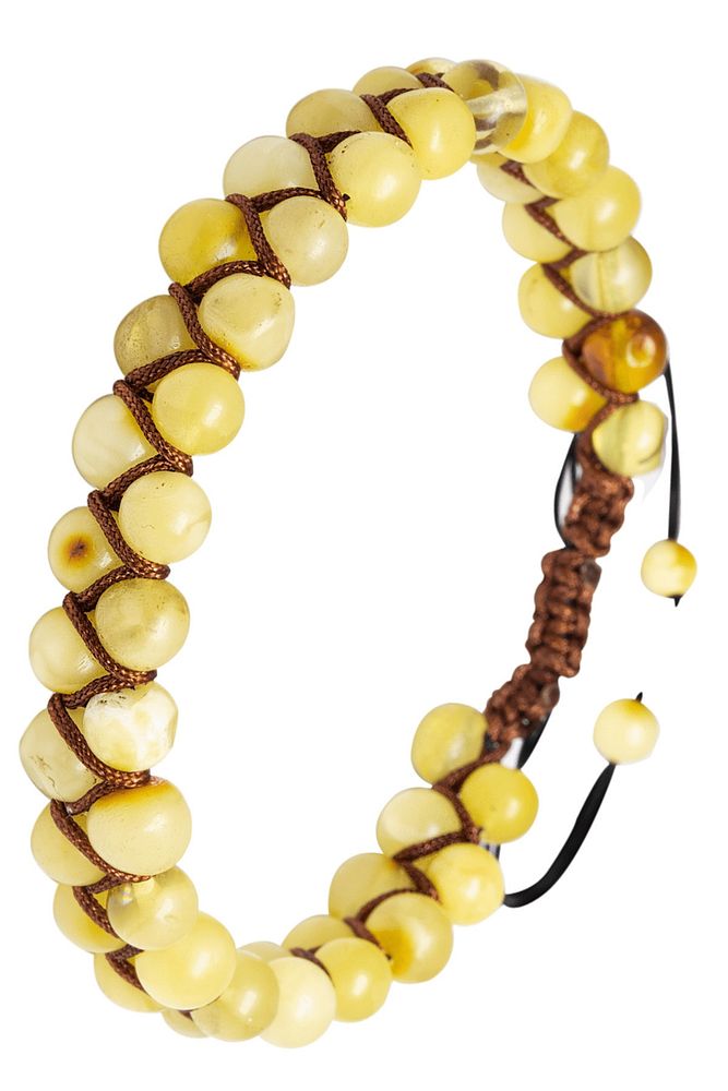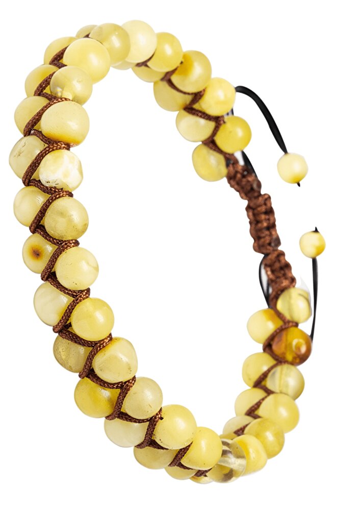 Kahverengi Ipli Makrome Doğal Damla Kehribar Bileklik