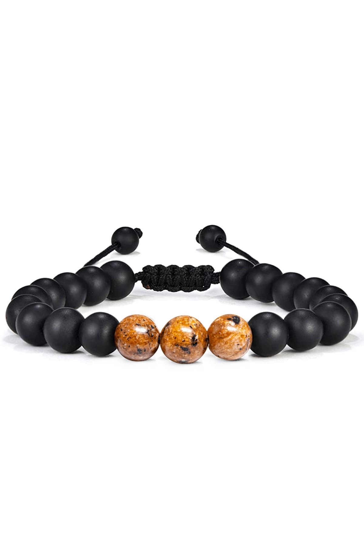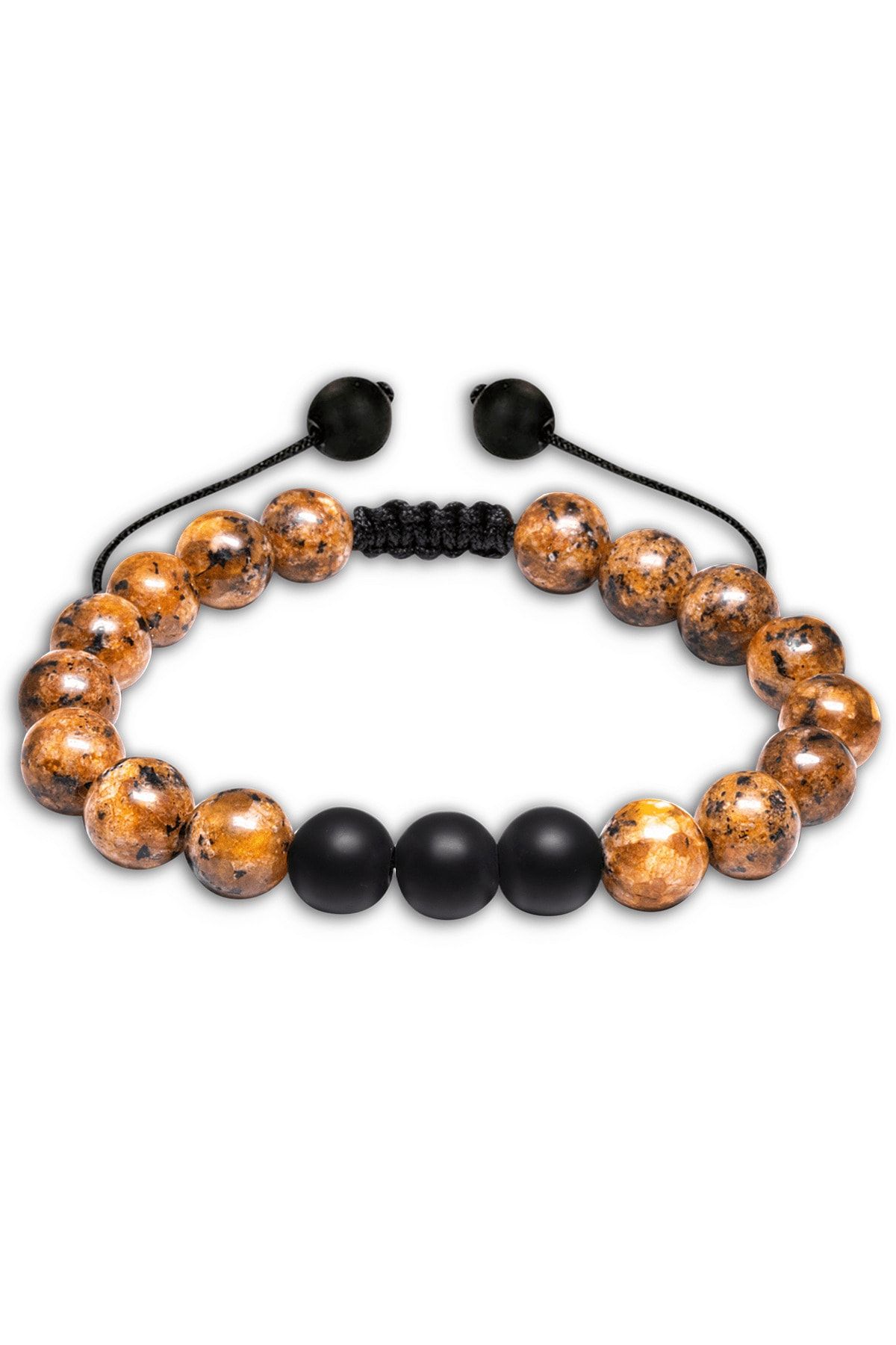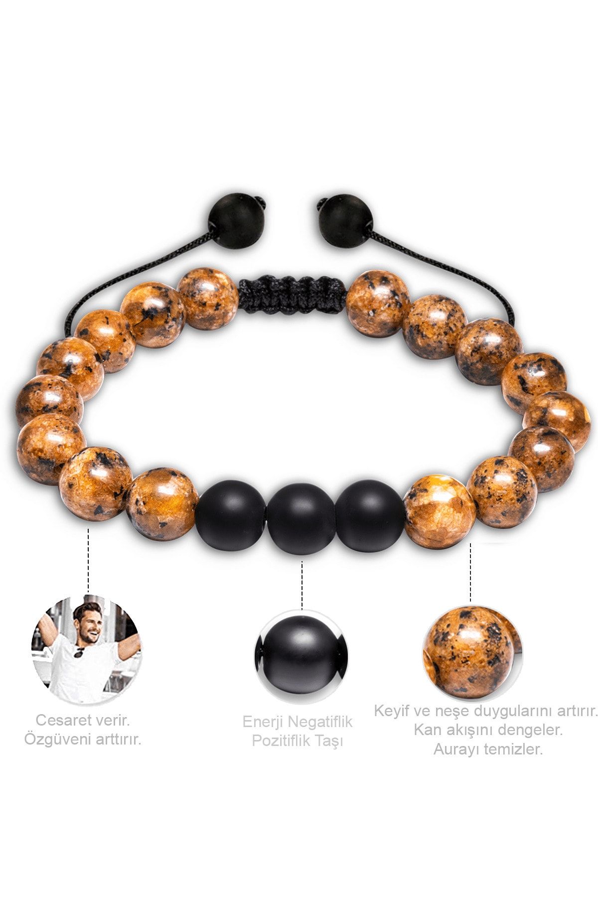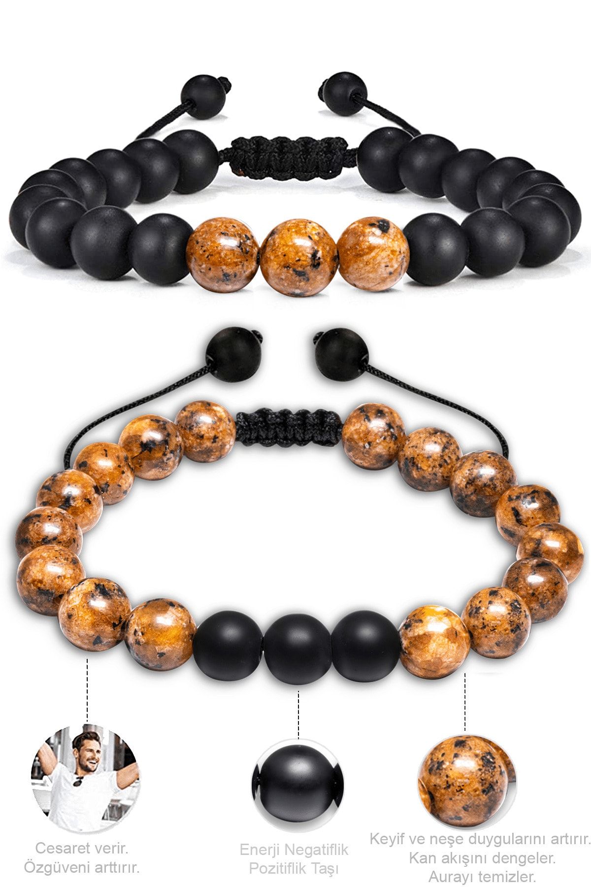 Kahverengi Siyah Benekli Jasper Taşı Makrome Bileklik Seti