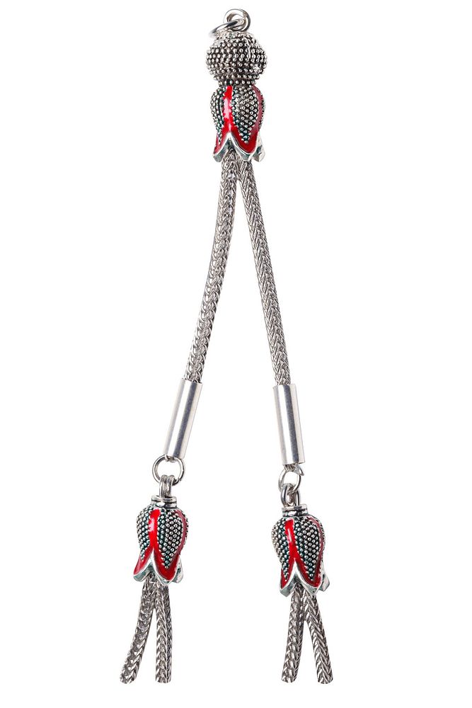 Tesbih Püskülü, modelleri, ''Tesbih Atölyesi'' Atölyelerinde ustalarımız tarafından 800 ayar gümüşten oluşmaktadır. Üzerine atılan çift katman rodaj sistemi ile renk atmaz ve matlaşmaz bir yapıya sahiptir. Tesbihlerinizi dilediğiniz gibi tasarlayabilmeniz için özel olarak hazırlandı. Ürünlerimiz el işciliği olduğu için sınırlı sayıda üretilmiştir.; ; Bu tasarımda; Kararmaz Kırmızı Mineli Düşük Ayar Gümüş Çift Sallamalı kullanılmıştır. Renk atmaz ve matlaşmaz bir yapıya sahiptir.; ; Üretildiği Alaşım; Düşük Ayar Gümüş; Ana Renk; Gümüş ; Ağırlık; 10-20 gr; Zincir; Tilki Zincir; Renk Atar Mı?; Renk Atmaz;