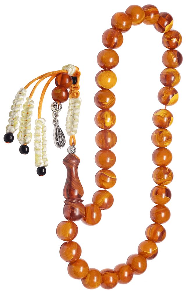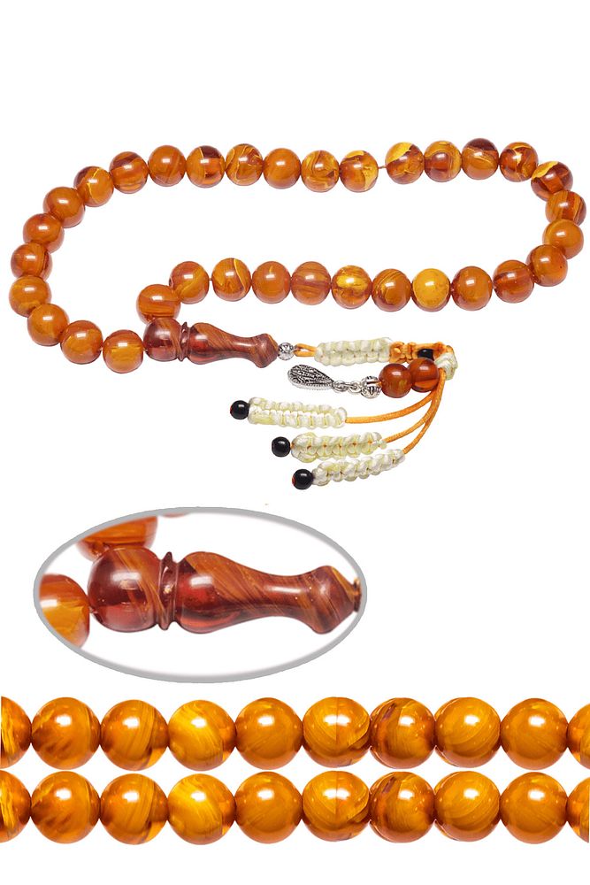 Kayısı Renkli Makrome Püsküllü Hareli Sıkma Kehribar Tesbih
