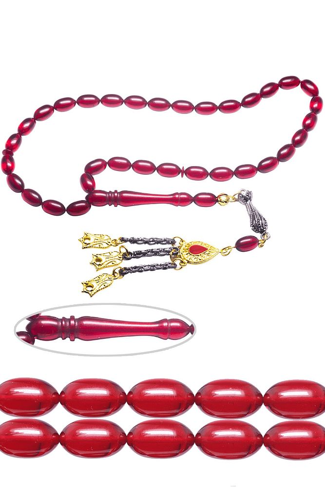 Ürün ya da Doğal Taş Açıklaması; ; (Ağrı Kesici, Sinir Stres ve Bereket Taşı); ; Ateş kehribar tesbih modelleri, ''Tesbih Atölyesi'' Atölyelerinde ustalarımız tarafından kuru torna işciliği ile elde özen ile tane tane işlenmektedir. Ürünlerimiz el işciliği olduğu için sınırlı sayıda üretilmektedir. Tasarımlarımızda kullandığımız reçineler Dünya'nın en kaliteli reçineleridir. Kısa bir süre içerisinde renk alır ve koku verir. Ürünleriniz orijinallik ve garanti belgesi ile gönderilir. Tasarımlarımıza üç kat cila atılmıştır. Muhteşem bir çekime sahip koleksiyonluk ve günlük çekim için ideal ürünlerdir.; ; Bu tasarımda; Bayrak kırmızı renkli kan kırmızı renk alan ve koku veren kaliteli ateş kehribar reçine kullanılmıştır. Her kehribar tanesi birbirinin aynısı olmadığı için küçükte olsa farklılıklar gösterebilir.; ; Üretildiği Malzeme; Ateş Kehribar; Ana Renk; Bayrak Kırmızı Renk; Ağırlık; 20-30 gr; Tane Şekli; 7x11 mm; Tane Ölçüsü; Beyzi Kesim; Toplam Uzunluk; 20-30 cm; İmame ve Püskül Maddesi; Düşük Ayar Gümüş;