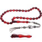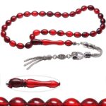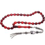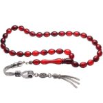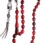 Ürün ya da Doğal Taş Açıklaması (Ağrı Kesici, Sinir Stres ve Bereket Taşı) Ateş kehribar tesbih modelleri, ”Tesbih Atölyesi” Atölyelerinde ustalarımız tarafından kuru torna işciliği ile elde özen ile tane tane işlenmektedir. Ürünlerimiz el işciliği olduğu için sınırlı sayıda üretilmektedir. Tasarımlarımızda kullandığımız reçineler Dünya’nın en kaliteli reçineleridir. Kısa bir süre içerisinde renk alır ve koku verir. Ürünleriniz orijinallik ve garanti belgesi ile gönderilir. Tasarımlarımıza üç kat cila atılmıştır. Muhteşem bir çekime sahip koleksiyonluk ve günlük çekim için ideal ürünlerdir. Bu tasarımda; Kırmızı ve siyah renkli özel 1.sınıf kalitede renk alan ve koku veren kaliteli ateş kehribar reçine kullanılmıştır. Her kehribar tanesi birbirinin aynısı olmadığı için küçükte olsa farklılıklar gösterebilir. Üretildiği Malzeme; Ateş Kehribar; Ana Renk; Kırmızı Siyah Renk; Ağırlık; 20-30 gr; Tane Şekli; 7.5×10 mm; Tane Ölçüsü; Beyzi Kesim; Toplam Uzunluk; 20-30 cm; İmame ve Püskül Maddesi; Düşük Ayar Gümüş;