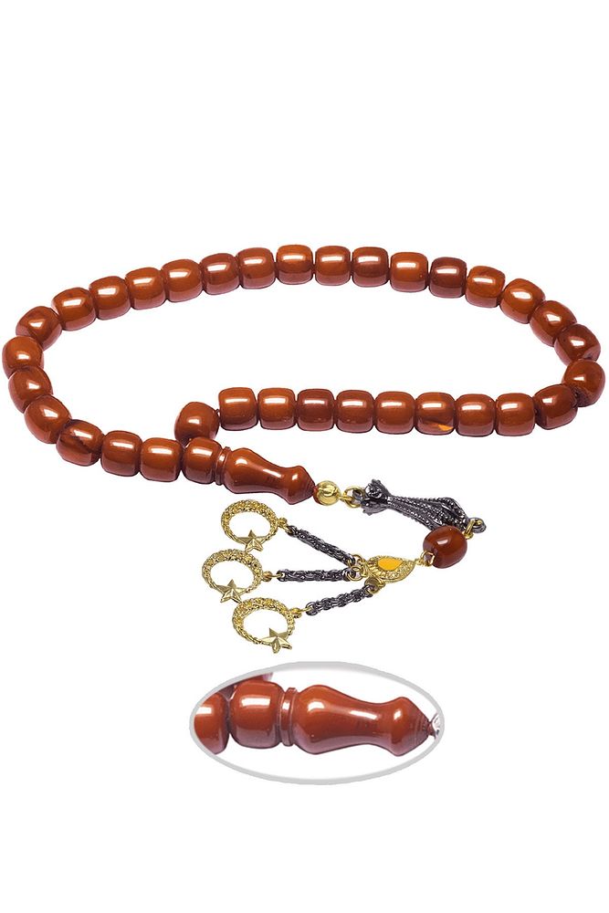 Koyu Kayısı Renkli Sıkma Kehribar Tesbih