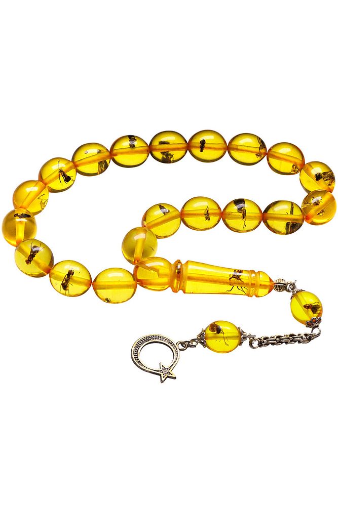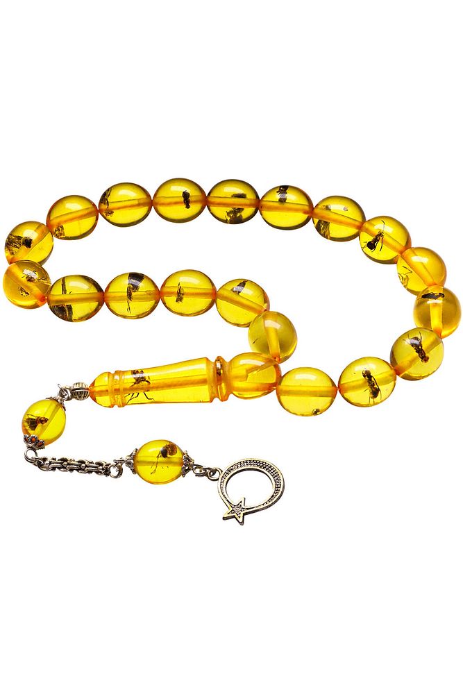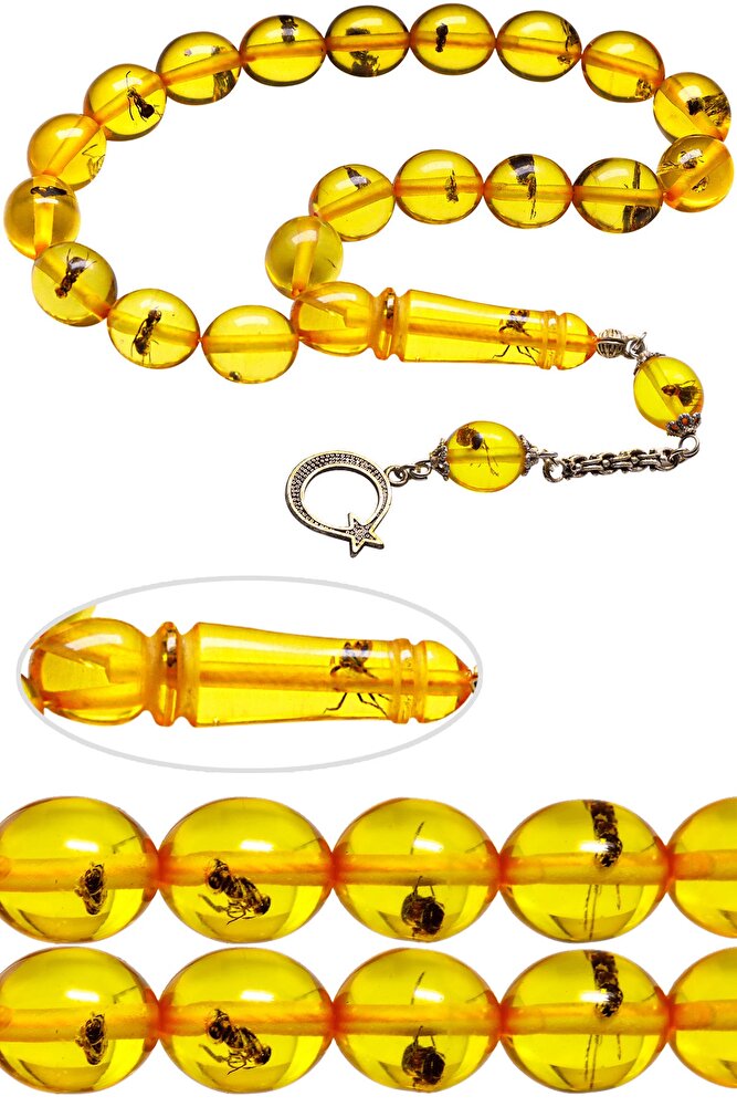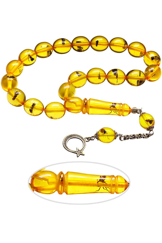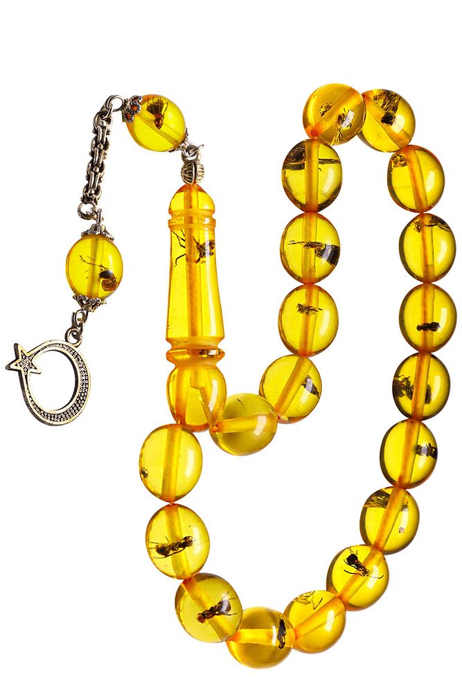 (Para - Sağlık - Pozitif Enerji Taşı) Karınca Fosilli Toz Kehribar Tesbih modelleri, ''Tesbih Atölyesi'' Atölyelerinde ustalarımız tarafından kuru torna işciliği ile elde özen ile tane tane işlenmektedir. Ürünlerimiz el işciliği olduğu için sınırlı sayıda üretilmektedir. Tasarımlarımızda kullandığımız taşlar Dünya'nın en kaliteli yapay reçinesi kullanmaktayız. Toz kehribar tesbih modellerimizin kalite olarak ateş ve sıkma kehribardan hiç bir farkı yoktur. Aradaki tek fark ateş ve sıkma kehribar tesbihin renk almasıdır. Bu tasarımda; Karınca fosilli toz kehribar kullanılmıştır. İmame ve Püskül yapımında; Düşük ayar gümüş kullanılmıştır. Çift kaplama rodaj atıldığı için renk atmaz ve kararmaz bir yapıya sahiptir. Üretildiği Malzeme; Karınca Fosilli Toz Kehribar; Ana Renk; Sarı; Ağırlık; 20-30 gr; Tane Şekli; 11x13 mm; Tane Ölçüsü; Beyzi Kesim Efe - Maskot; Toplam Uzunluk; 20-30 cm; İmame ve Püskül Maddesi; Düşük Ayar Gümüş;