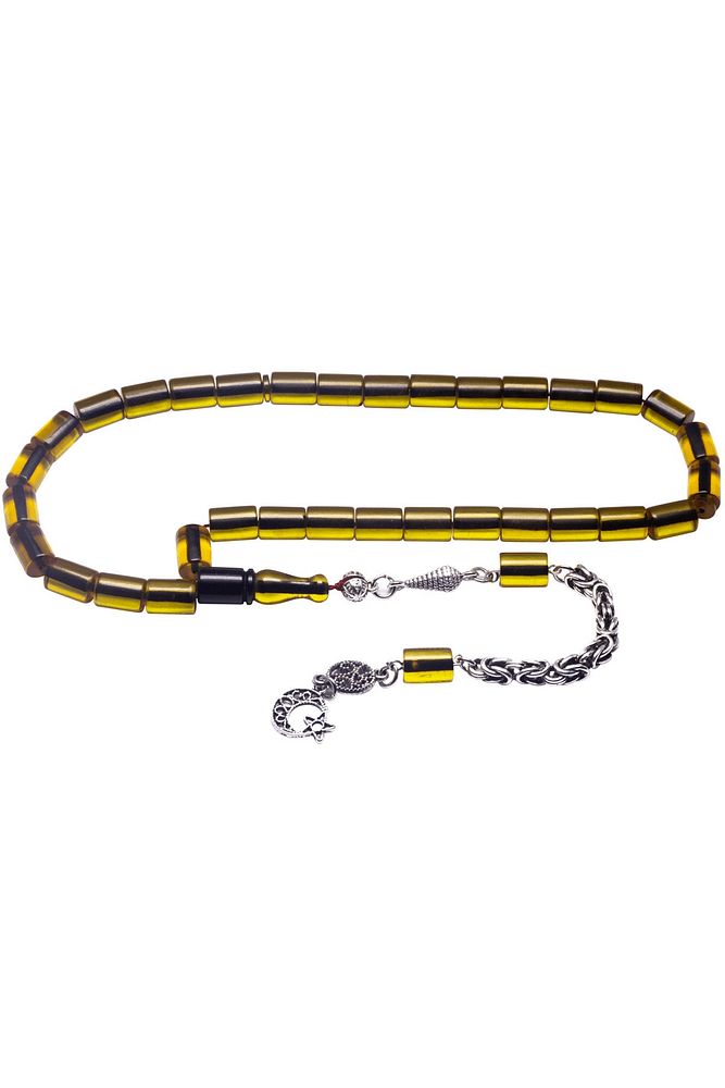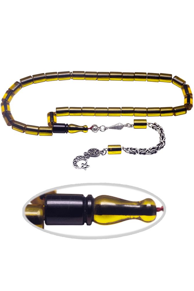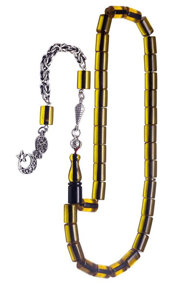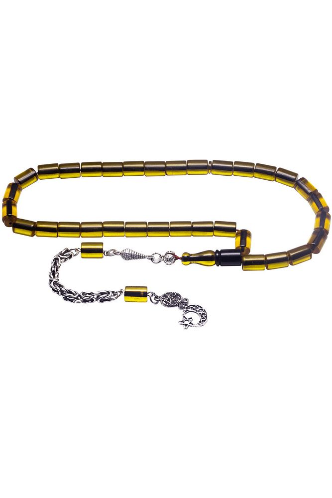 Kral Püsküllü Kesme Kesim Sarı Siyah Renkli Ateş Kehribar Tesbih