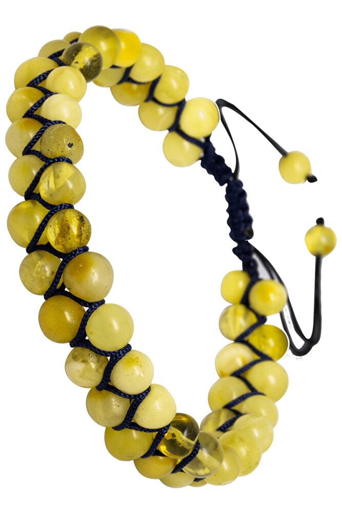 Lacivert Makrome Doğal Damla Kehribar Bileklik