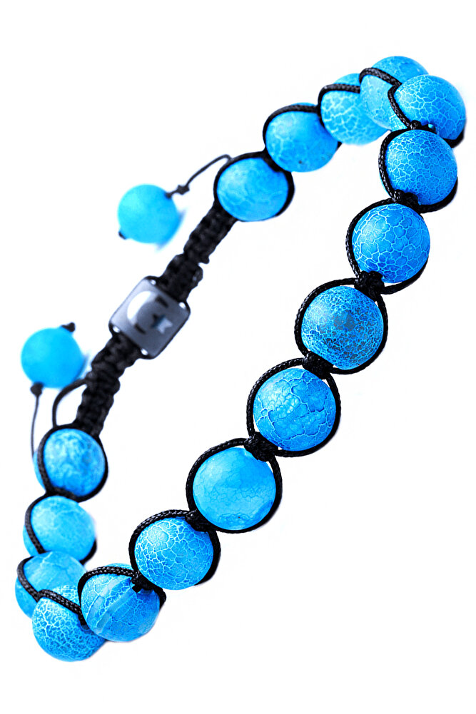 Bu tasarımda; Buz Mavi Akik Taşı kullanılmıştır. Makrome ipi 30 kat ip örülerek yapıldığı için asla kopmaz ve aşınmayacak her bileğe göre ayarlanabilir boyuttadır.