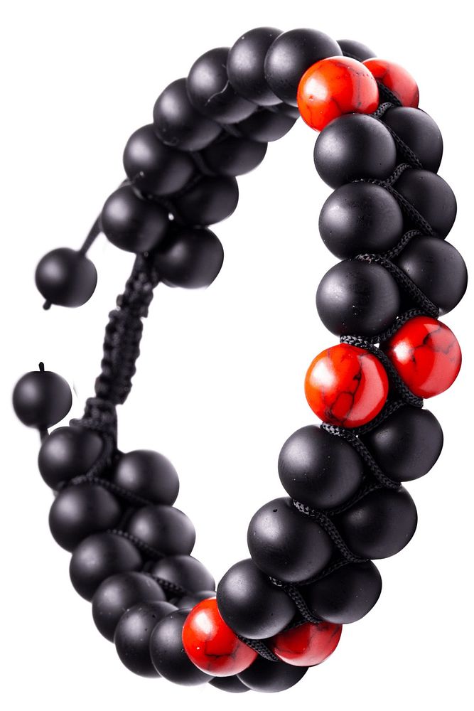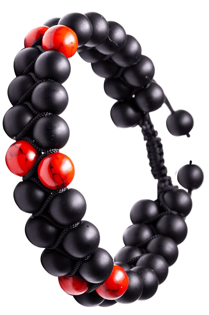 Makrome Çift Sıra Oniks Taşı Ve Kırmızı Mercan Bileklik