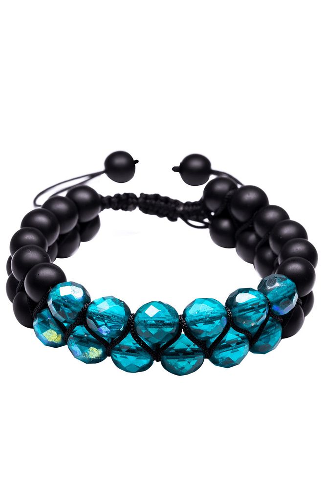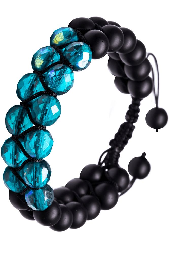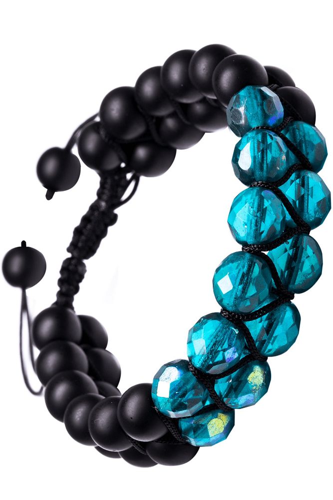 Makrome Çift Sıra Oniks Taşı Ve Mavi Kuvars Bileklik