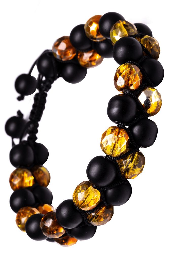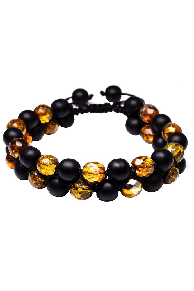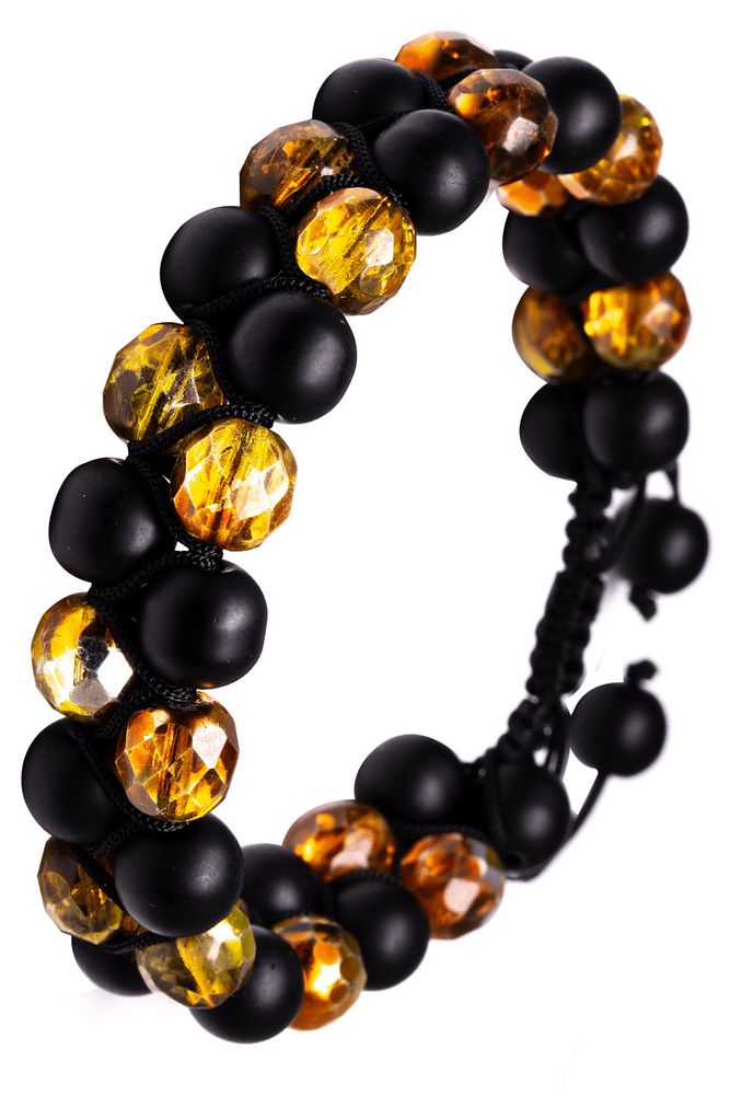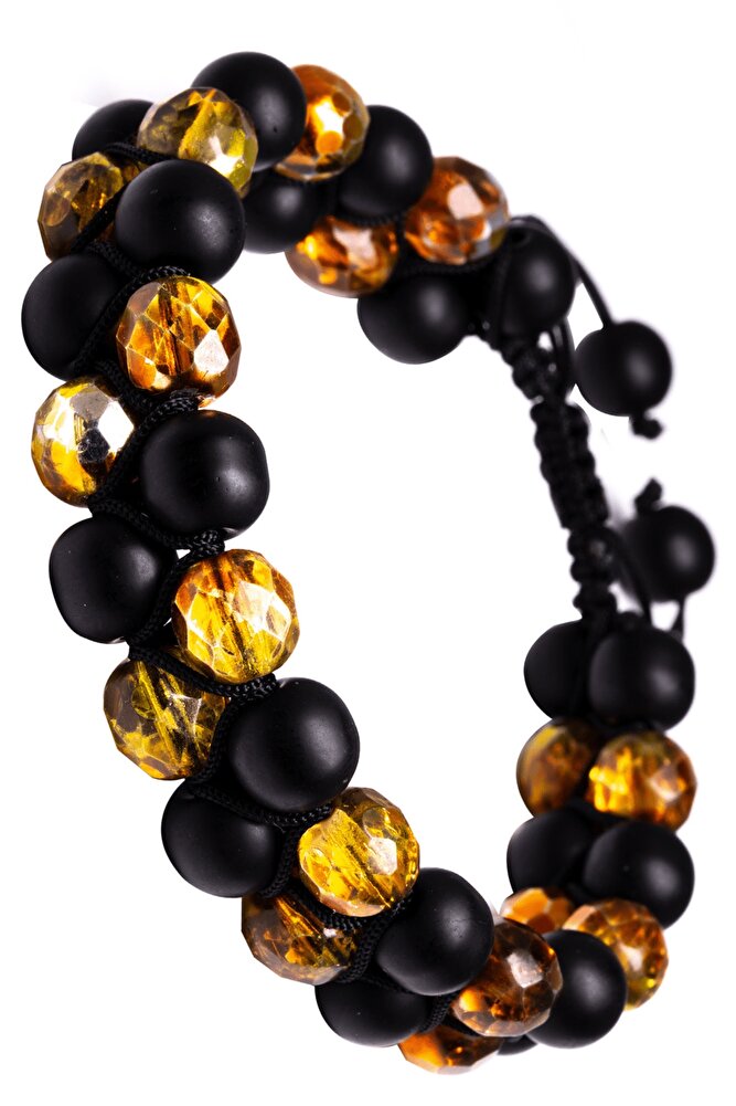 Makrome Çift Sıra Oniks Taşı Ve Sarı Kristal Kuvars Bileklik