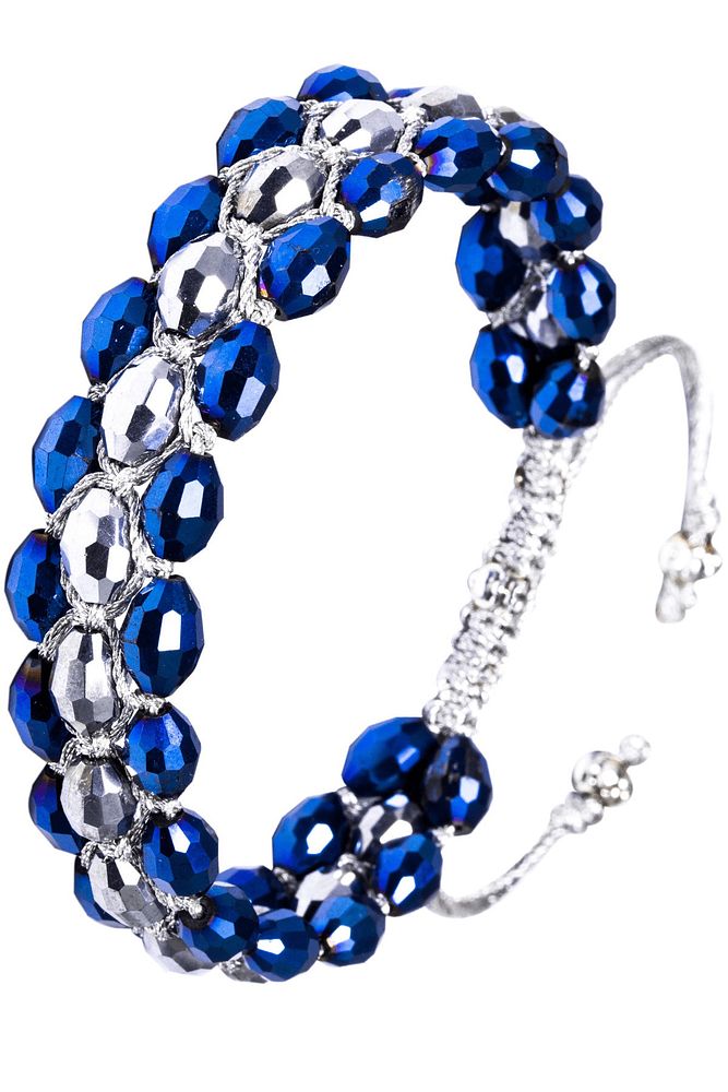 Makrome Mavi Gümüş Geçişli Doğal Hematit Taşı Bileklik