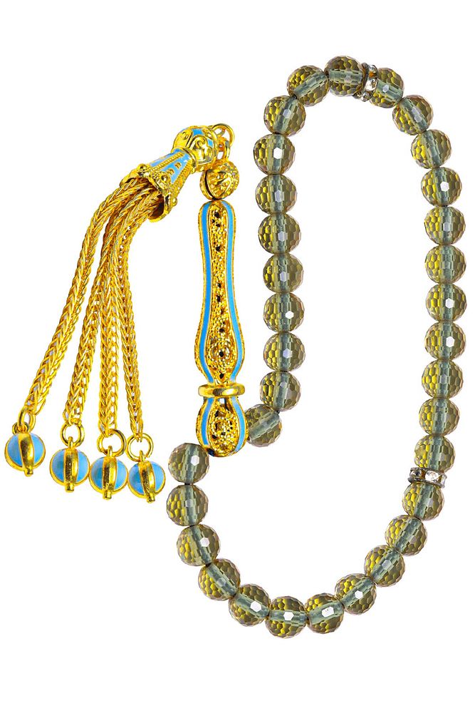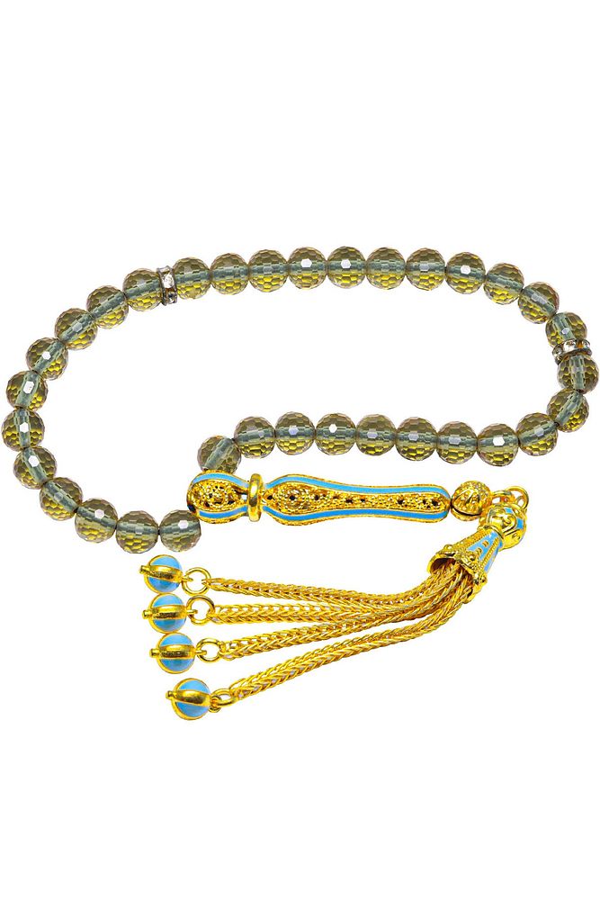 Ortam Işığına Göre 7 Renk Değiştiren Turkuaz Mineli Altın Kaplama Dört Parmak Boy Zultanit Tesbih