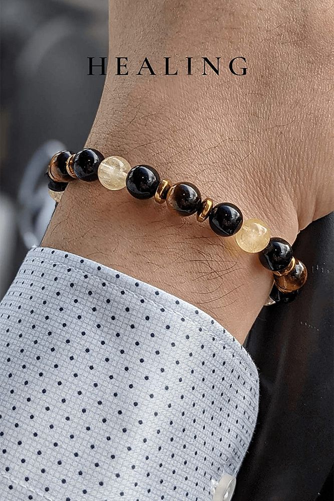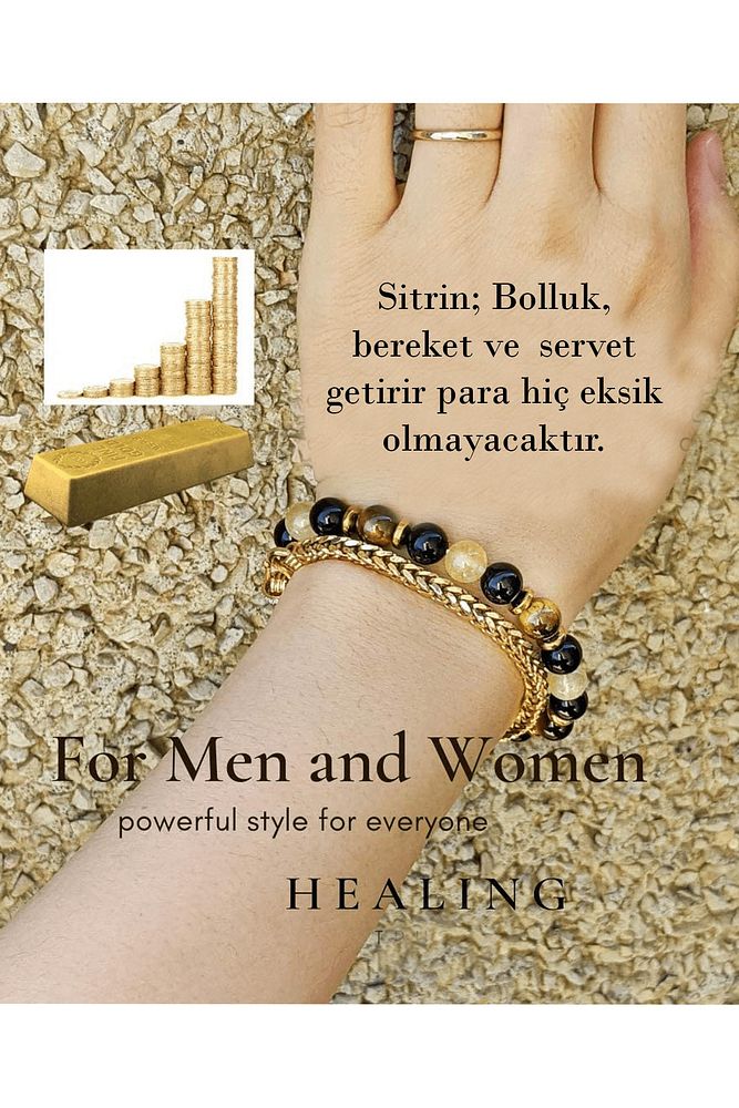 Para Sağlık Mutluluk Doğal Taş Bileklik (kaplan Gözü Sitrin Lav Obsidyen)