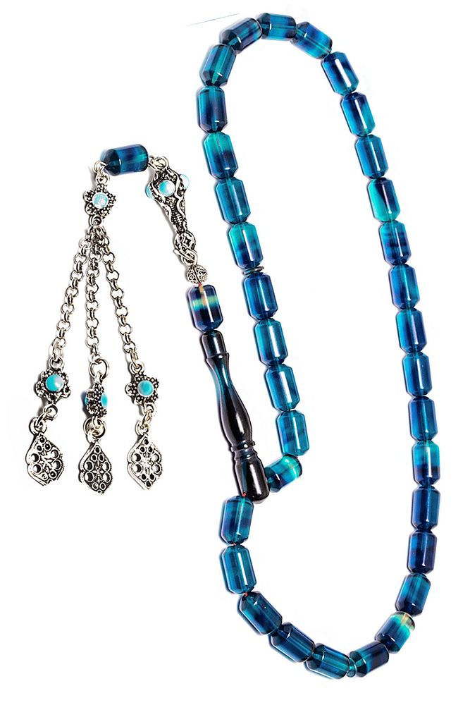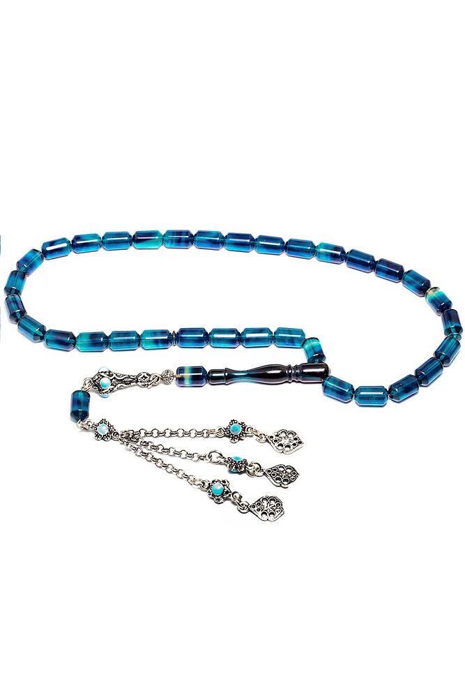 Parlement Mavisi Renkli Ateş Kehribar Tesbih