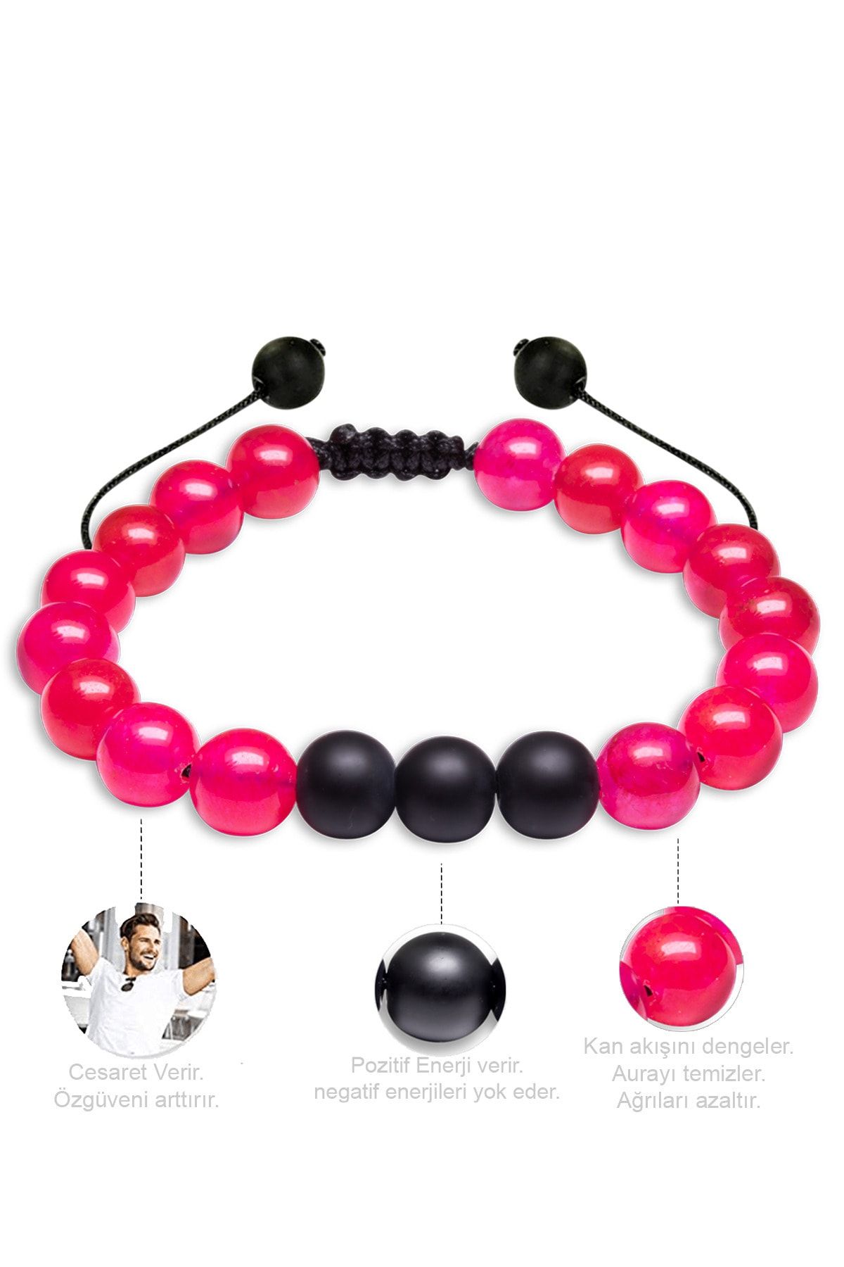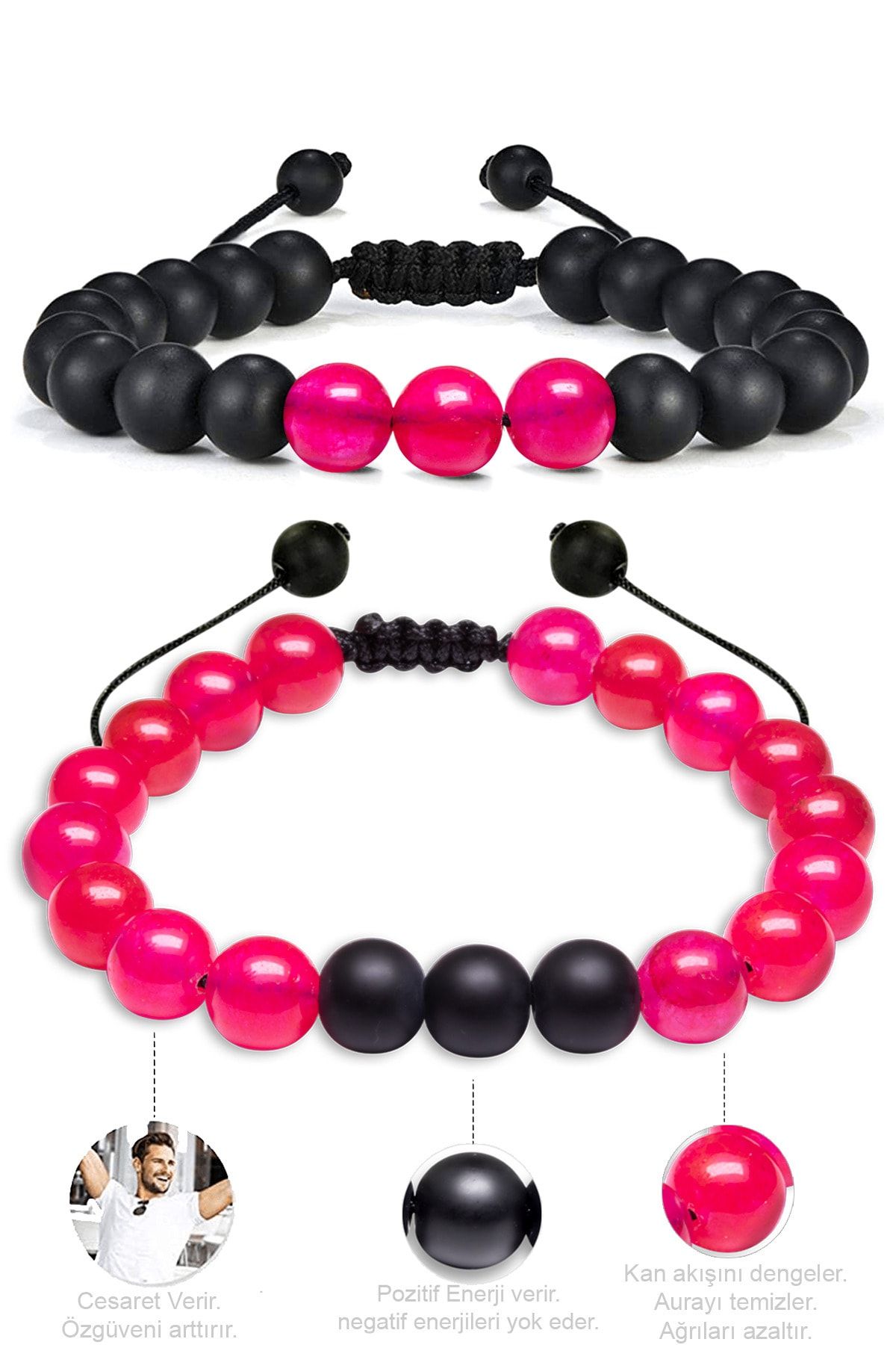 Pembe Akik Taşı Çift Doğal Taş Bileklik Seti