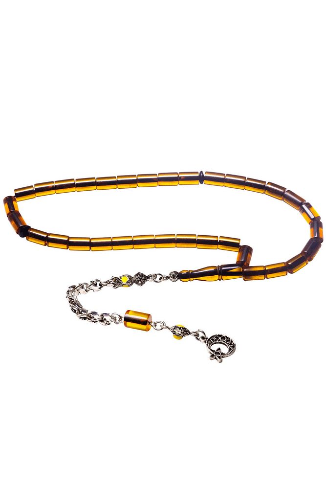 Sarı Mineli Halep Püsküllü Kesme Ateş Kehribar Tesbih