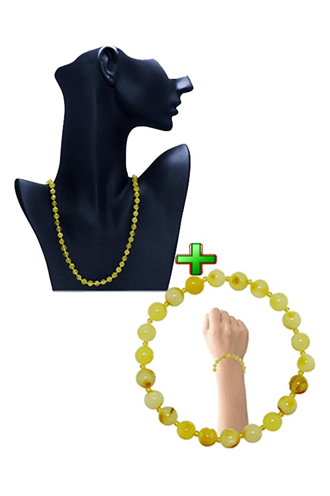 Sarı Renkli Doğal Damla Kehribar Kolye Bileklik Seti