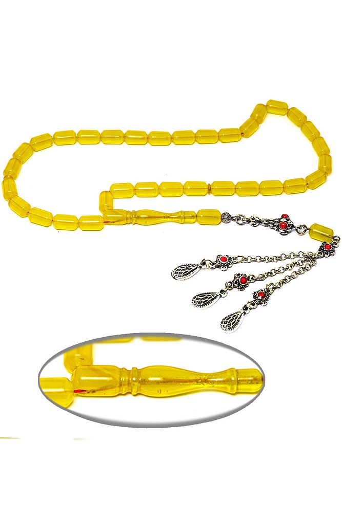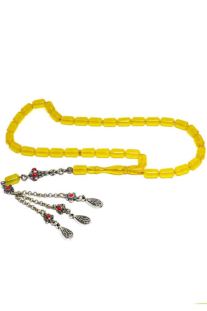 Sarı Renkli Kapsül Kesim Kırmızı Halep Püsküllü Zar Kehribar Tesbih