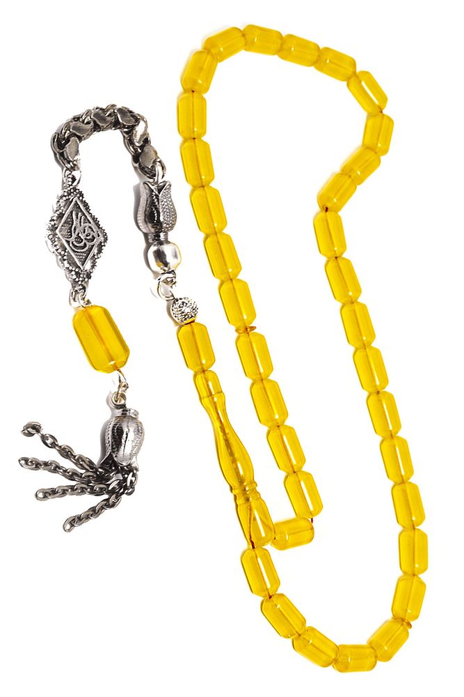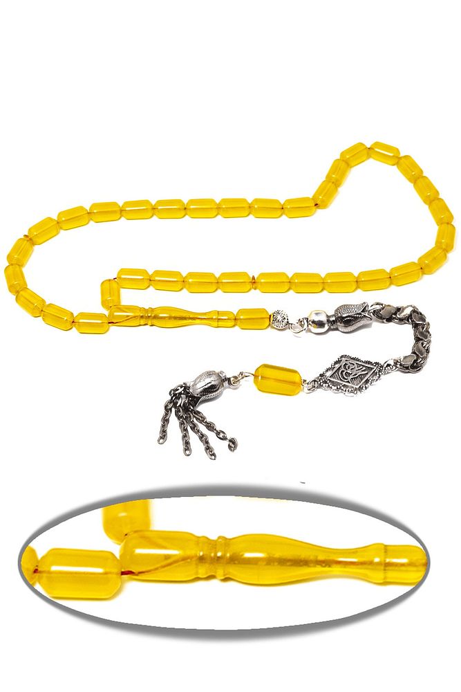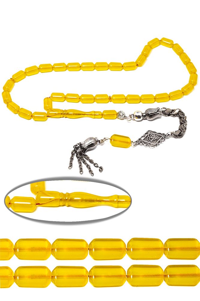Sarı Renkli Kapsül Kesim Zar Kehribar Tesbih