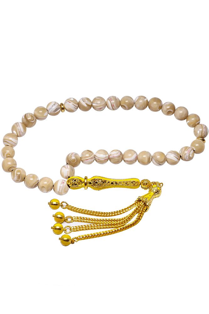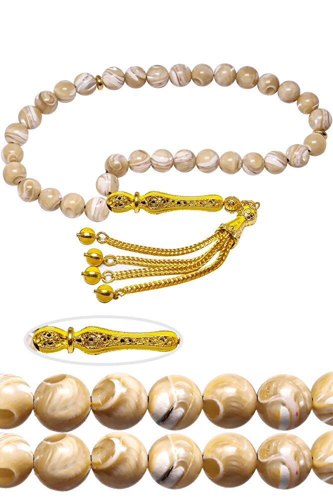 Sarı Renkli Sarı Mineli Telkari Püsküllü Doğal Damarlı Sedef Tesbih