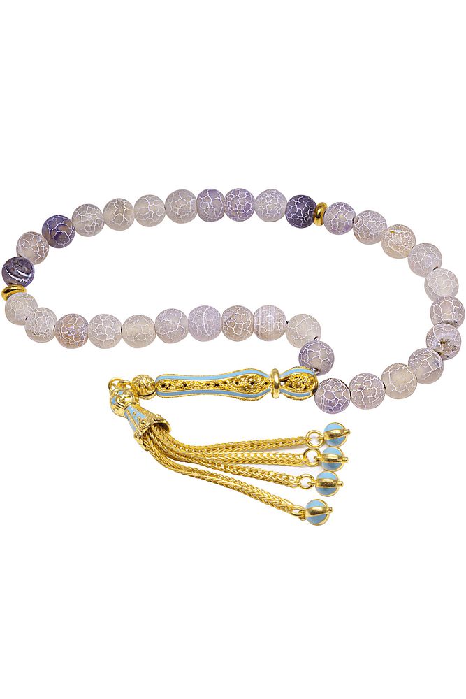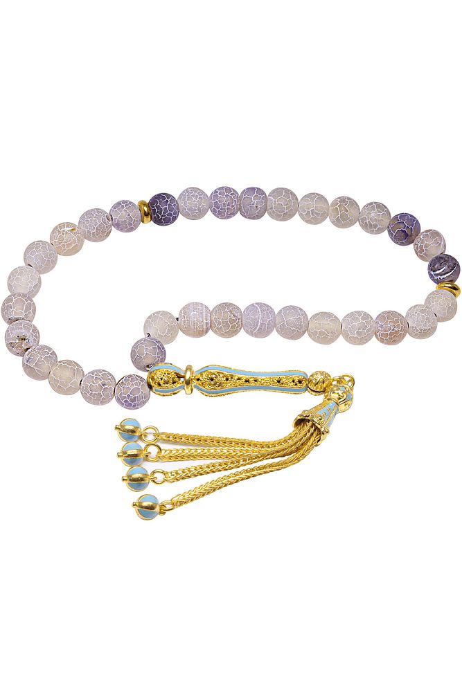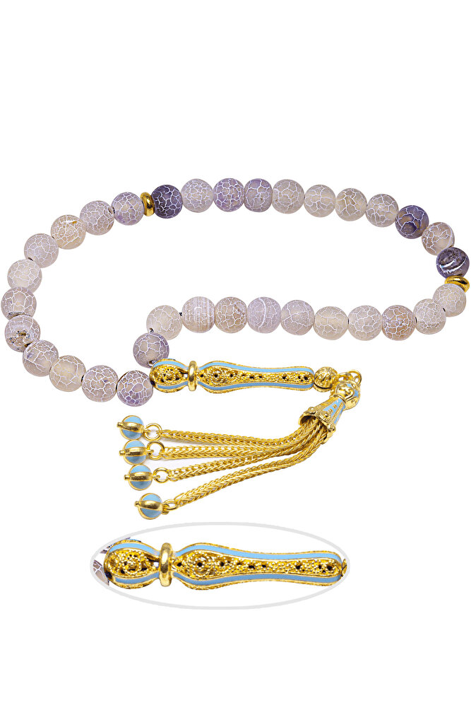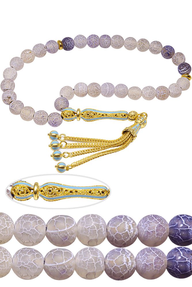 Sarı Turkuaz Mineli Telkari Püsküllü Damarlı Mor Gri Renkli Akik Tesbih