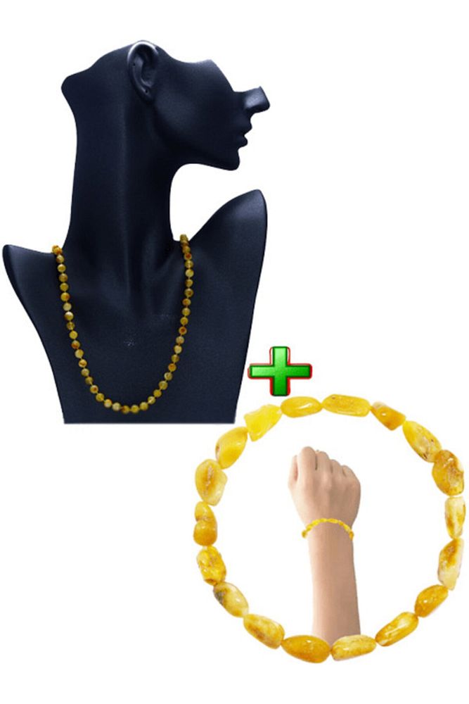 Seccar Doğal Damla Kehribar Kolye Bileklik Seti