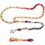 Ürün ya da Doğal Taş Açıklaması; ; (Ağrı Kesici, Sinir Stres ve Bereket Taşı); ; Ateş kehribar tesbih modelleri, ”Tesbih Atölyesi” Atölyelerinde ustalarımız tarafından kuru torna işciliği ile elde özen ile tane tane işlenmektedir. Ürünlerimiz el işciliği olduğu için sınırlı sayıda üretilmektedir. Tasarımlarımızda kullandığımız reçineler Dünya’nın en kaliteli reçineleridir. Kısa bir süre içerisinde renk alır ve koku verir. Ürünleriniz orijinallik ve garanti belgesi ile gönderilir. Tasarımlarımıza üç kat cila atılmıştır. Muhteşem bir çekime sahip koleksiyonluk ve günlük çekim için ideal ürünlerdir.; ; Bu tasarımda; Şeffaf ve kırmızı renkli özel 1.sınıf kalitede renk alan ve koku veren kaliteli ateş kehribar reçine kullanılmıştır. Her kehribar tanesi birbirinin aynısı olmadığı için küçükte olsa farklılıklar gösterebilir.; ; Üretildiği Malzeme; Ateş Kehribar; Ana Renk; Şeffaf ve Kırmızı Renk; Ağırlık; 20-30 gr; Tane Şekli; 7×11 mm; Tane Ölçüsü; Beyzi Kesim; Toplam Uzunluk; 20-30 cm; İmame ve Püskül Maddesi; Düşük Ayar Gümüş;