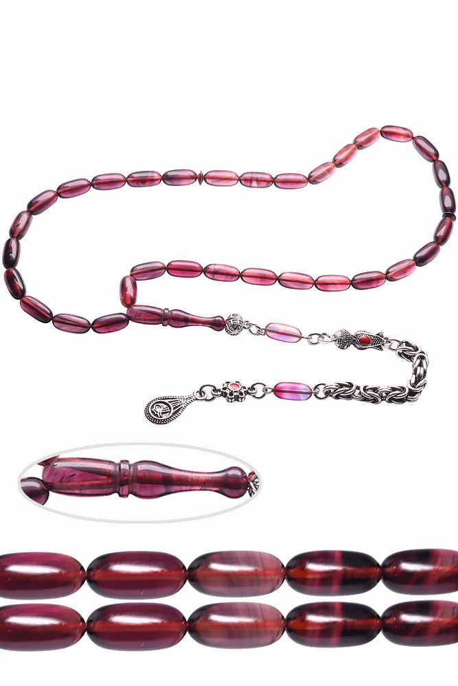 Ürün ya da Doğal Taş Açıklaması (Ağrı Kesici, Sinir Stres ve Bereket Taşı) Ateş kehribar tesbih modelleri, ''Tesbih Atölyesi'' Atölyelerinde ustalarımız tarafından kuru torna işciliği ile elde özen ile tane tane işlenmektedir. Ürünlerimiz el işciliği olduğu için sınırlı sayıda üretilmektedir. Tasarımlarımızda kullandığımız reçineler Dünya'nın en kaliteli reçineleridir. Kısa bir süre içerisinde renk alır ve koku verir. Ürünleriniz orijinallik ve garanti belgesi ile gönderilir. Tasarımlarımıza üç kat cila atılmıştır. Muhteşem bir çekime sahip koleksiyonluk ve günlük çekim için ideal ürünlerdir. Bu tasarımda; Şeffaf ve kırmızı renkli özel 1.sınıf kalitede renk alan ve koku veren kaliteli ateş kehribar reçine kullanılmıştır. Her kehribar tanesi birbirinin aynısı olmadığı için küçükte olsa farklılıklar gösterebilir. Üretildiği Malzeme; Ateş Kehribar; Ana Renk; Şeffaf ve Kırmızı Renk; Ağırlık; 20-30 gr; Tane Şekli; 5.5x11 mm; Tane Ölçüsü; Aspirin Kapsül Kesim; Toplam Uzunluk; 20-30 cm; İmame ve Püskül Maddesi; Düşük Ayar Gümüş;