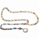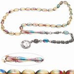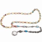 Ürün ya da Doğal Taş Açıklaması (Ağrı Kesici, Sinir Stres ve Bereket Taşı) Ateş kehribar tesbih modelleri, ”Tesbih Atölyesi” Atölyelerinde ustalarımız tarafından kuru torna işciliği ile elde özen ile tane tane işlenmektedir. Ürünlerimiz el işciliği olduğu için sınırlı sayıda üretilmektedir. Tasarımlarımızda kullandığımız reçineler Dünya’nın en kaliteli reçineleridir. Kısa bir süre içerisinde renk alır ve koku verir. Ürünleriniz orijinallik ve garanti belgesi ile gönderilir. Tasarımlarımıza üç kat cila atılmıştır. Muhteşem bir çekime sahip koleksiyonluk ve günlük çekim için ideal ürünlerdir. Bu tasarımda; Şeffaf renk cümbüşü özel 1.sınıf kalitede renk alan ve koku veren kaliteli ateş kehribar reçine kullanılmıştır. Her kehribar tanesi birbirinin aynısı olmadığı için küçükte olsa farklılıklar gösterebilir. Üretildiği Malzeme; Ateş Kehribar; Ana Renk; Şeffaf Renk Cümbüşü; Ağırlık; 20-30 gr; Tane Şekli; 7×11 mm; Tane Ölçüsü; Beyzi Kesim; Toplam Uzunluk; 20-30 cm; İmame ve Püskül Maddesi; Düşük Ayar Gümüş;