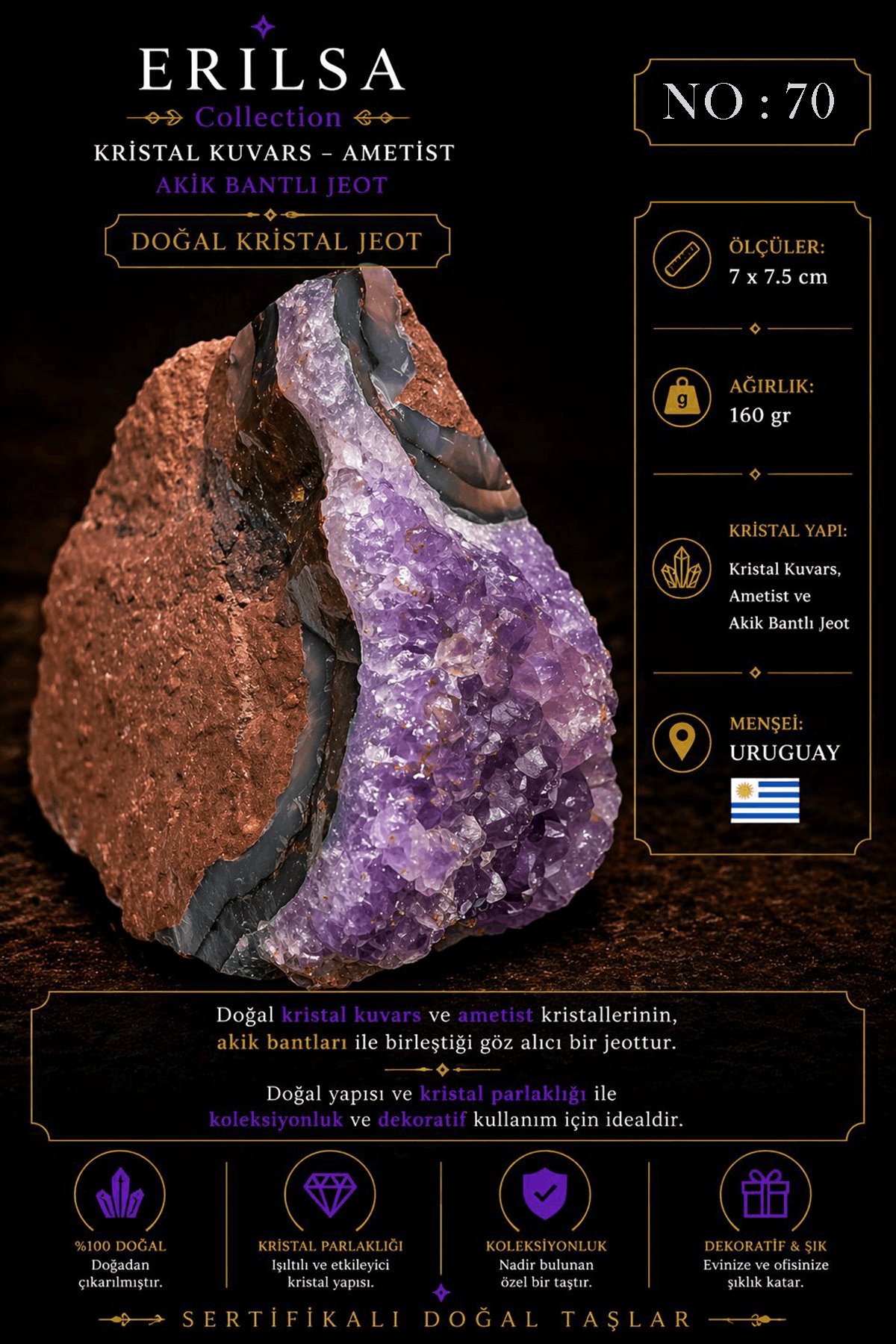 Sertifikalı Doğal Ametist Jeodu Akik Bantlı Kristal Kuvars Ham Kaya Uruguay NO70