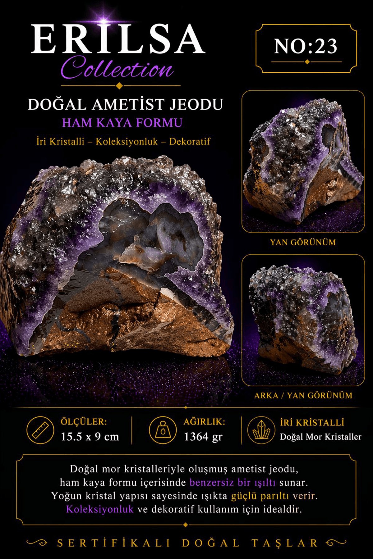 Sertifikalı Doğal Ametist Jeodu Taşı İri Kristal Ham Kaya Mor Ametist Büyük Kütle Dekoratif