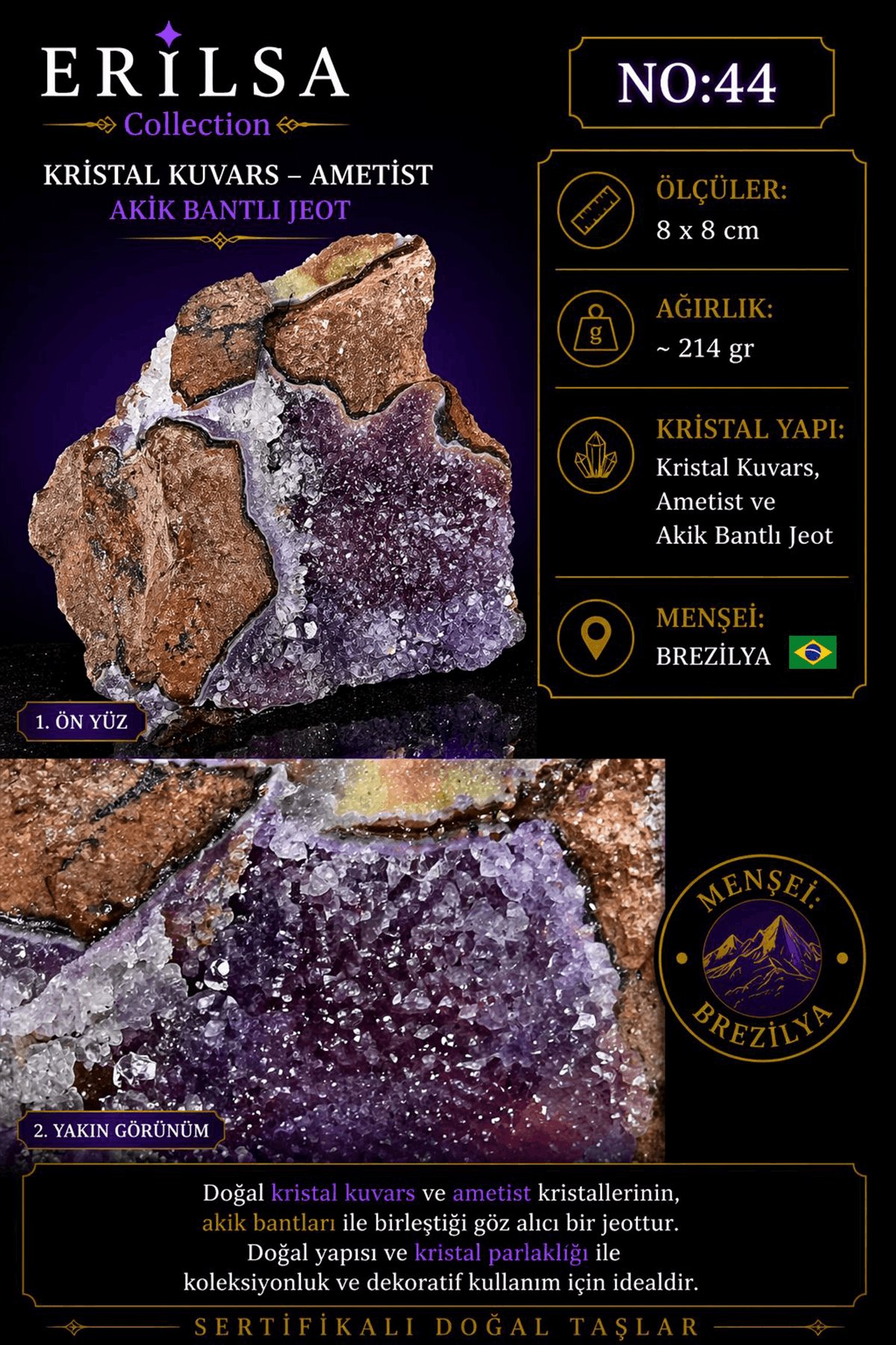 Sertifikalı Kristal Kuvars Ametist Akik Bantlı Jeot Doğal Dekoratif NO44