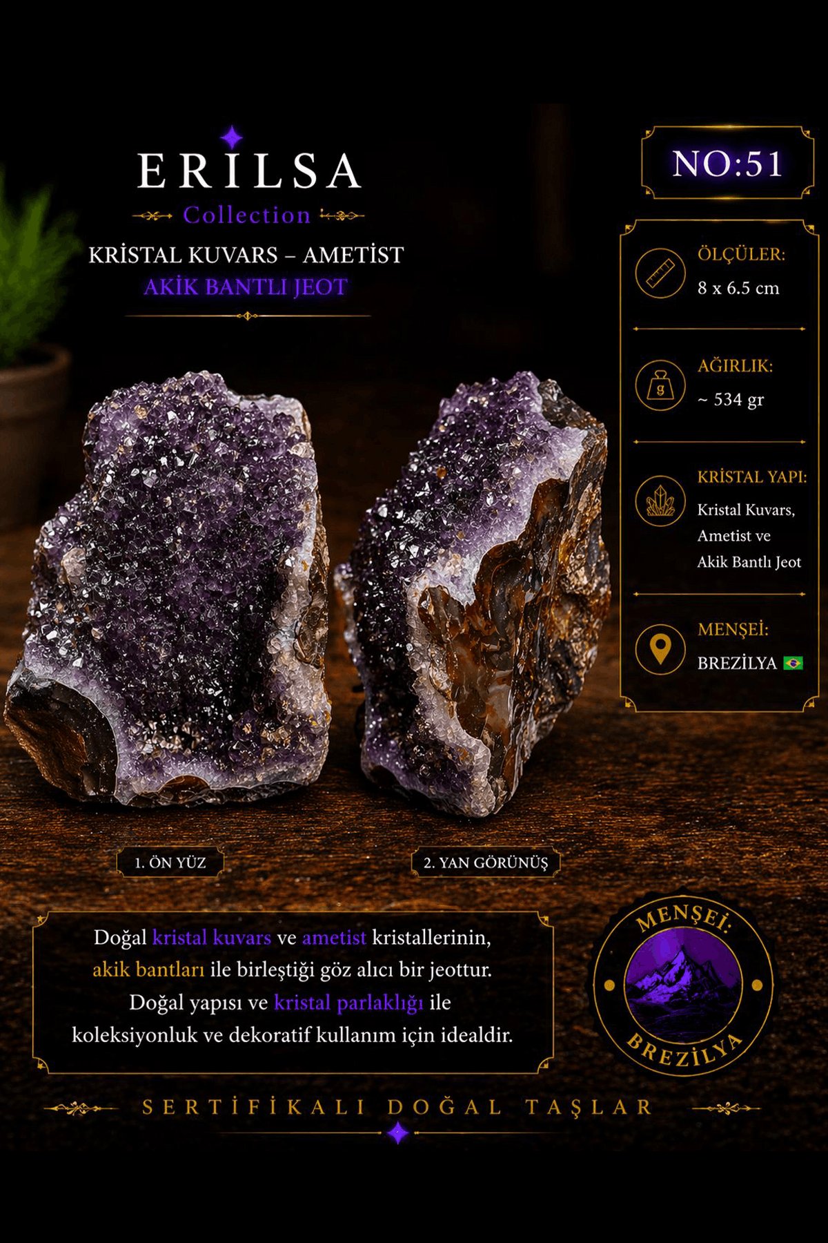 Sertifikalı Kristal Kuvars Ametist Akik Bantlı Jeot Doğal Dekoratif Taş NO51