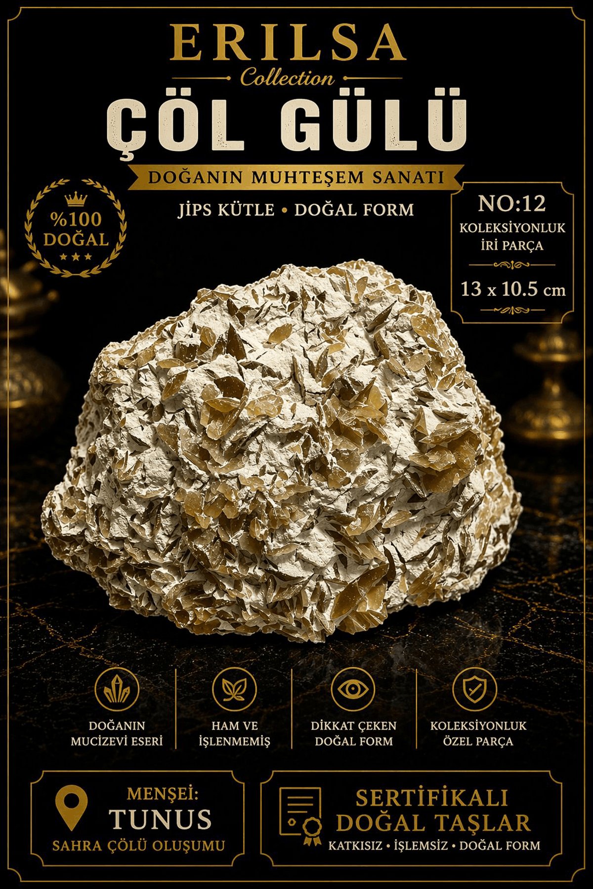 Sertifikalı Çöl Gülü Taşı Kütle - 13x10.5 cm Koleksiyonluk İri Doğal Jips Kütle