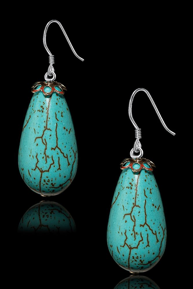 Sertifikalı 1.kalite Damla Kesim Boyasız Firuze Taşı Doğal Taş Küpe - Iran